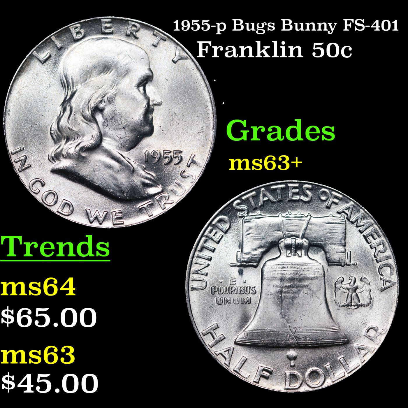 1955-p Bugs Bunny FS-401 Franklin Half Dollar 50c Grades Select+ Unc.