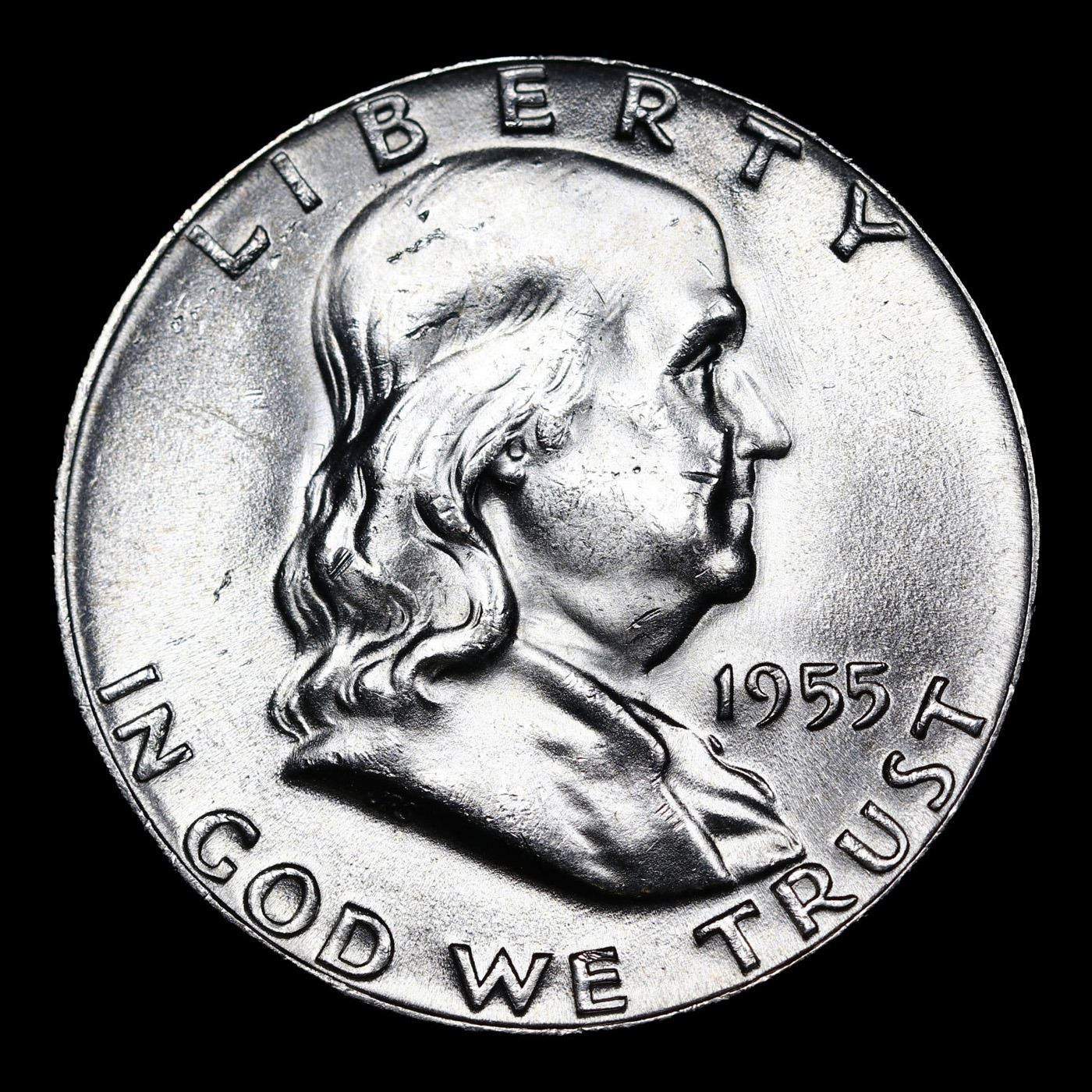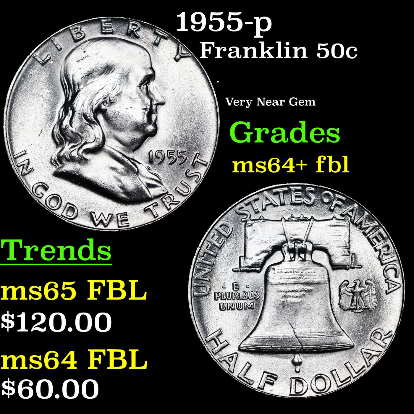 1955-p Franklin Half Dollar 50c Grades Choice Unc+ FBL.