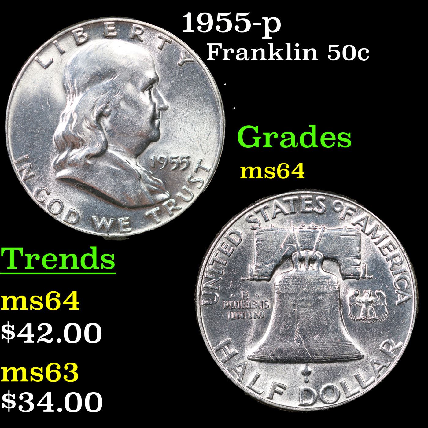 1955-p Franklin Half Dollar 50c Grades Choice Unc.
