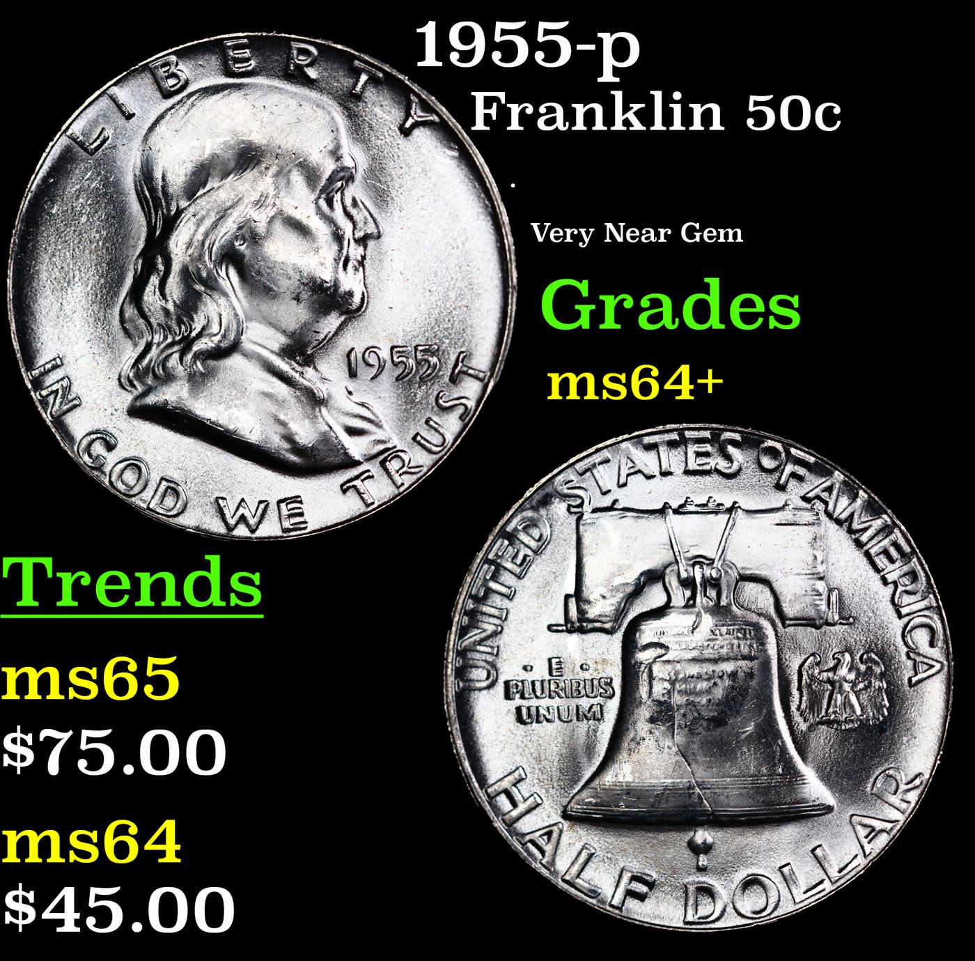 1955-p Franklin Half Dollar 50c Grades Choice+ Unc.