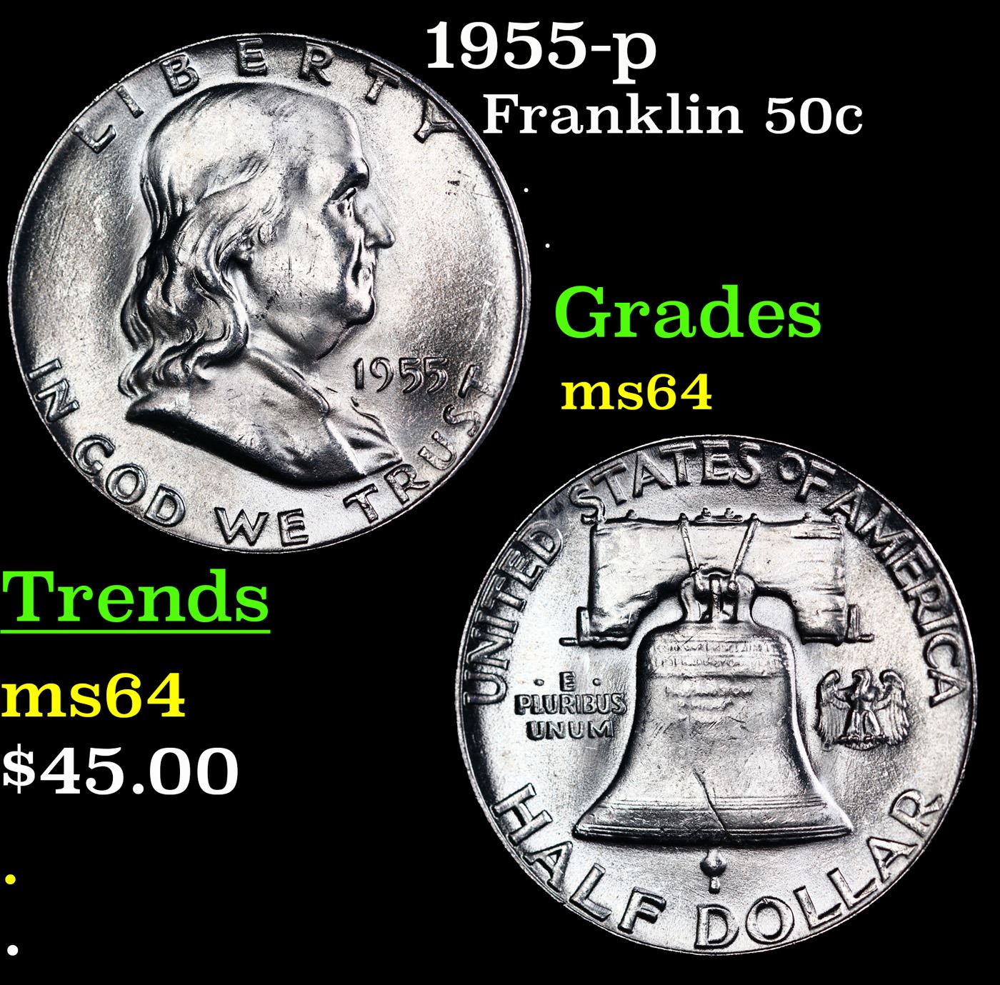 1955-p Franklin Half Dollar 50c Grades Choice Unc.