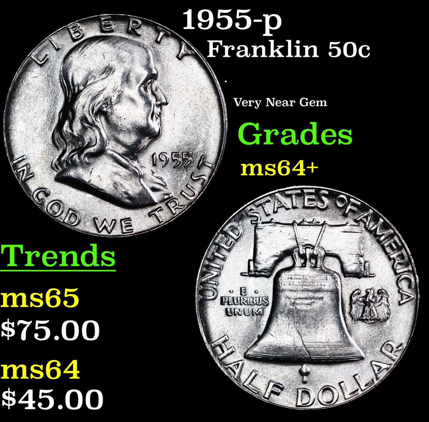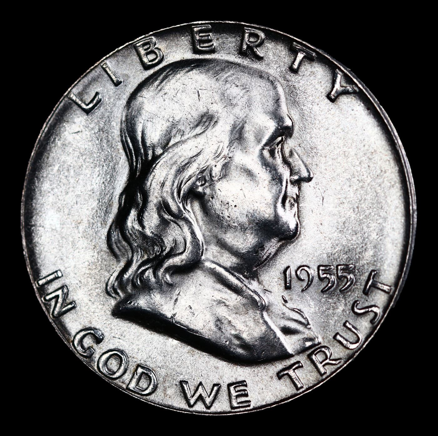 1955-p Franklin Half Dollar 50c Grades Choice+ Unc.