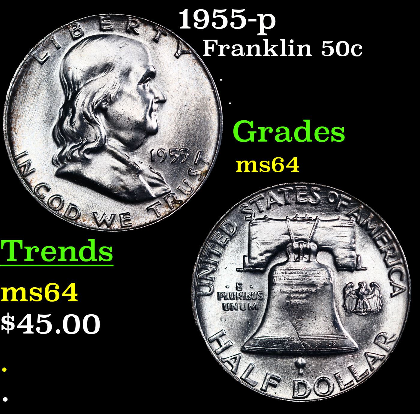 1955-p Franklin Half Dollar 50c Grades Choice Unc.