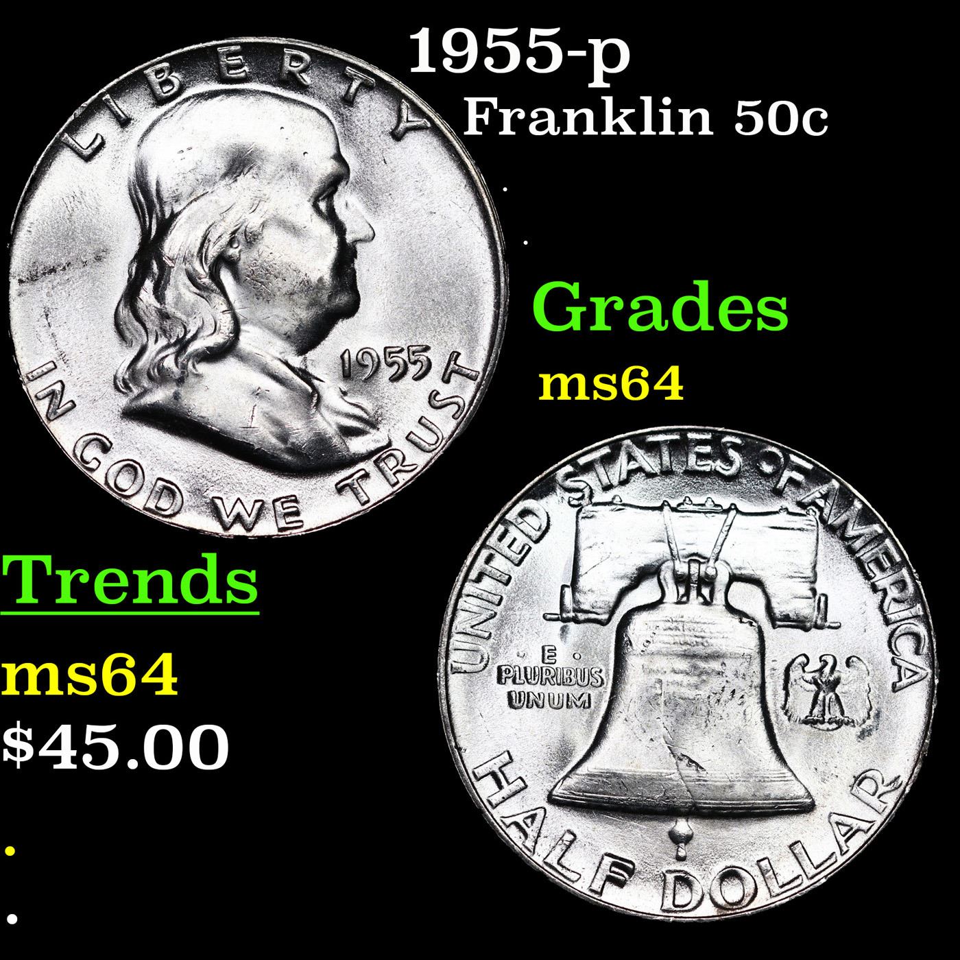 1955-p Franklin Half Dollar 50c Grades Choice Unc.