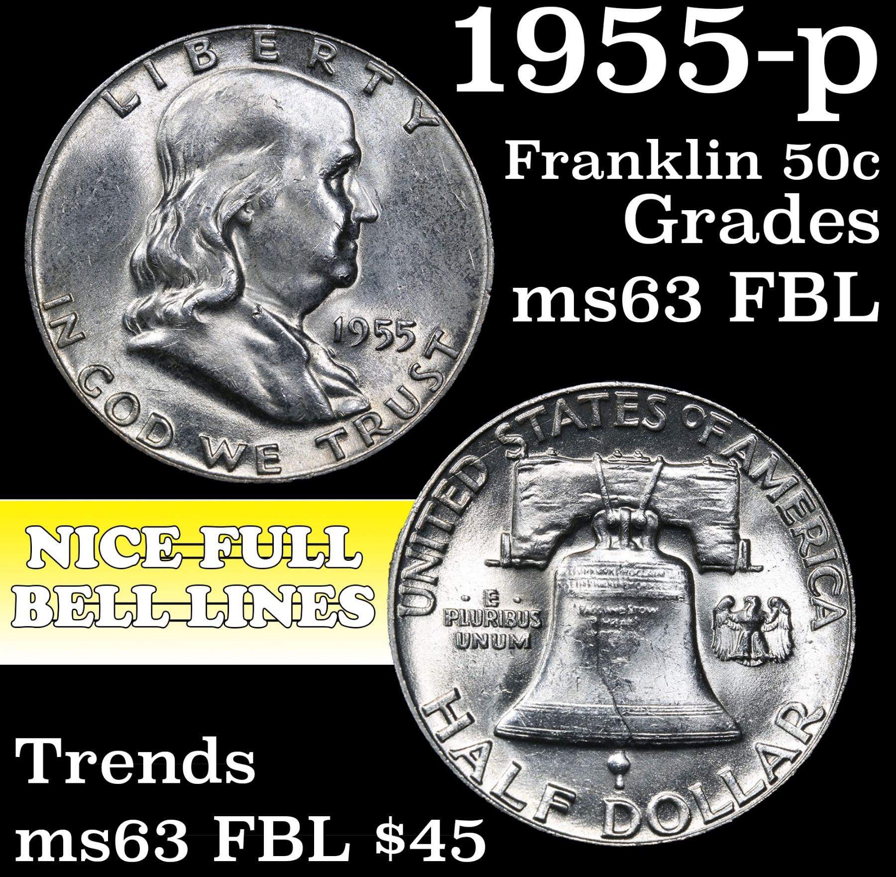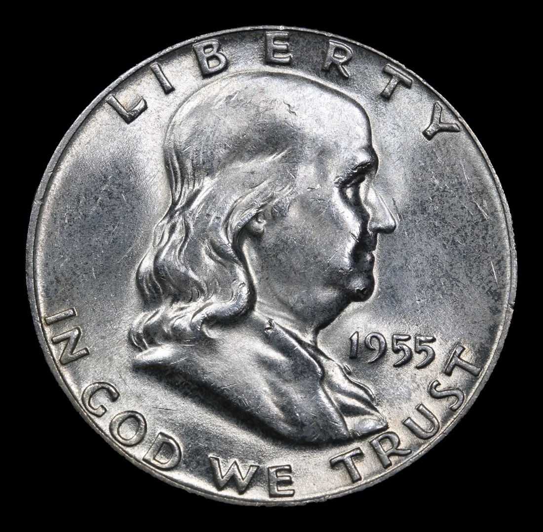 1955-p Franklin Half Dollar 50c Grades Select Unc FBL.