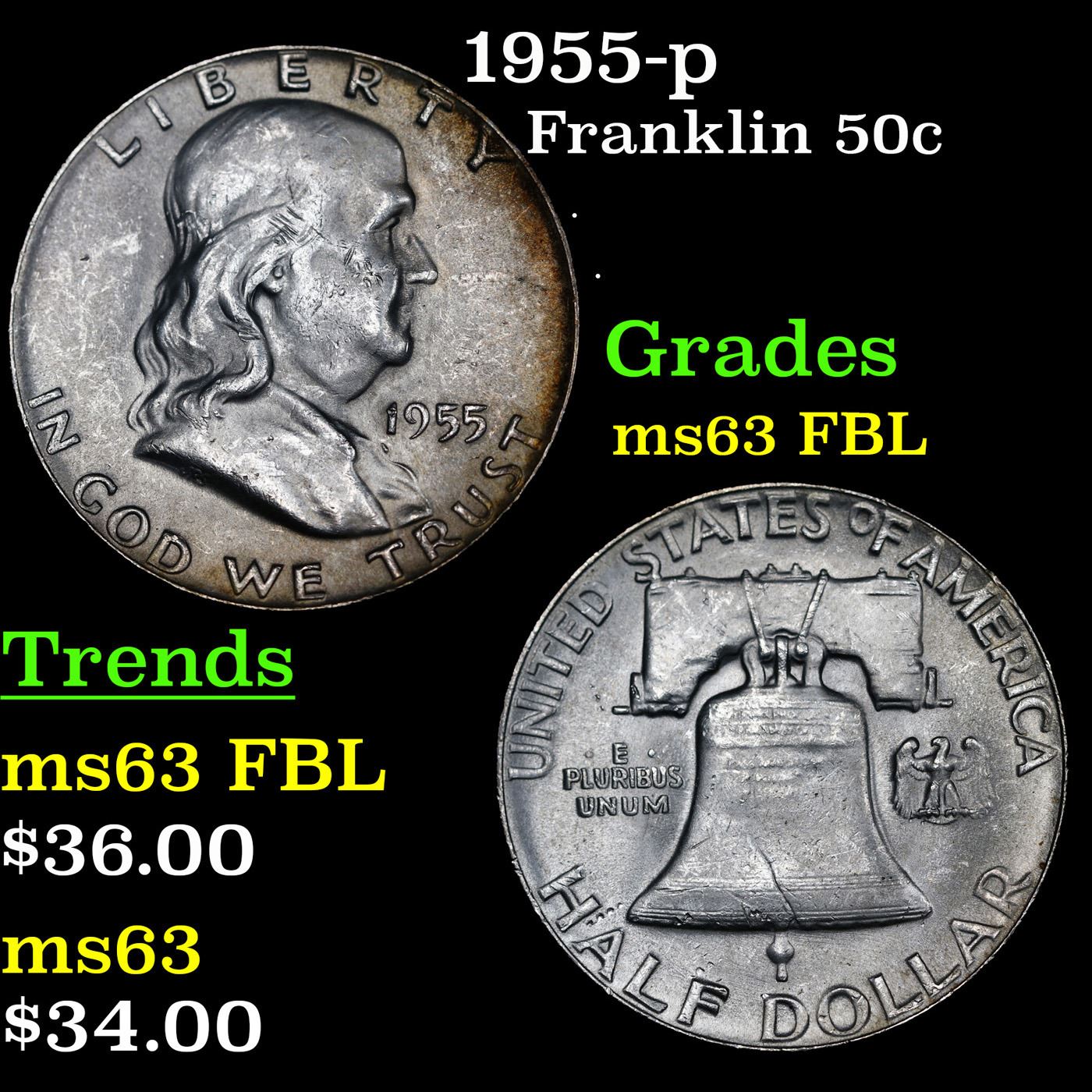 1955-p Franklin Half Dollar 50c Grades Select Unc FBL.