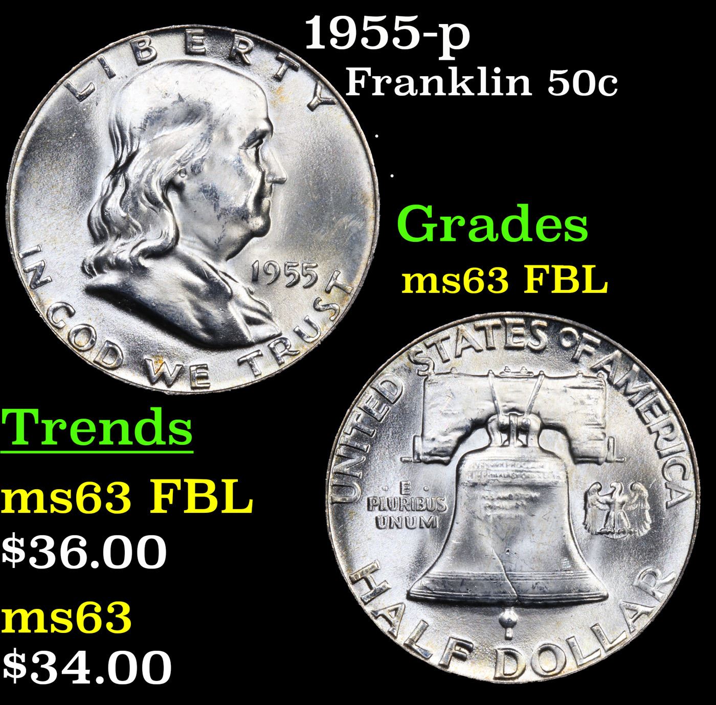 1955-p Franklin Half Dollar 50c Grades Select Unc FBL.