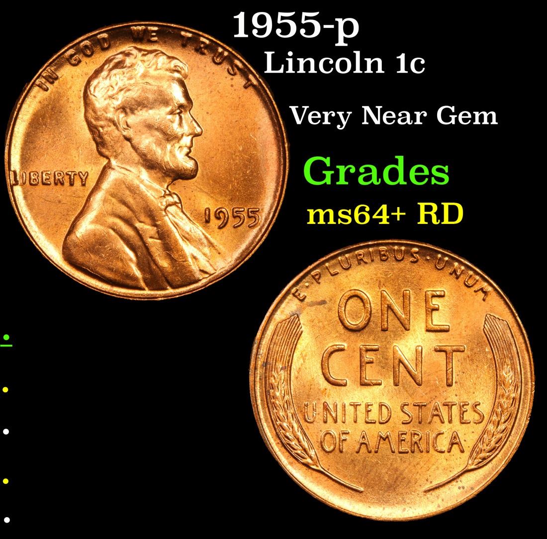 1955-p . Very Near Gem Lincoln Cent 1c Grades Choice+ Unc RD.