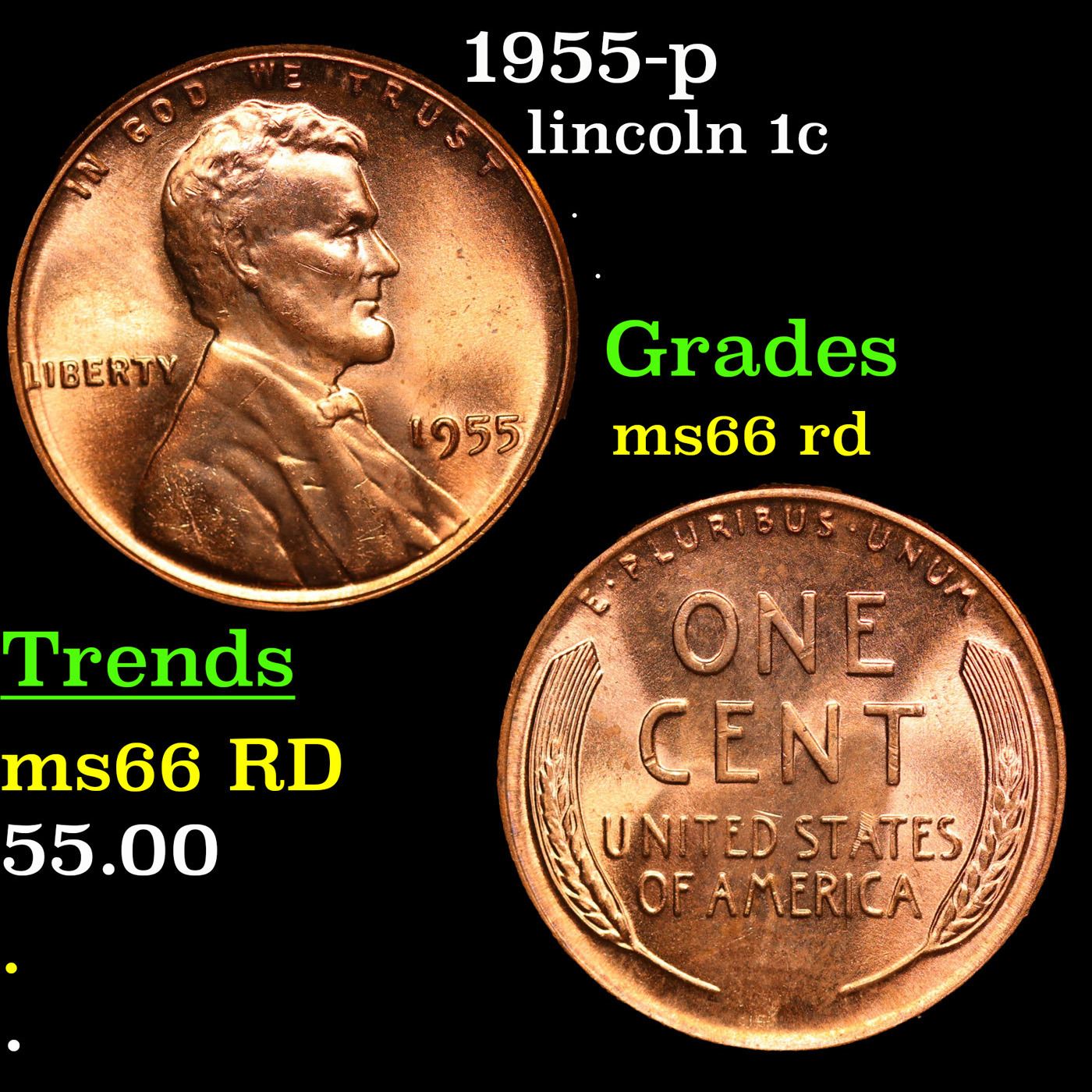 1955-p Lincoln Cent 1c Grades GEM+ Unc RD.