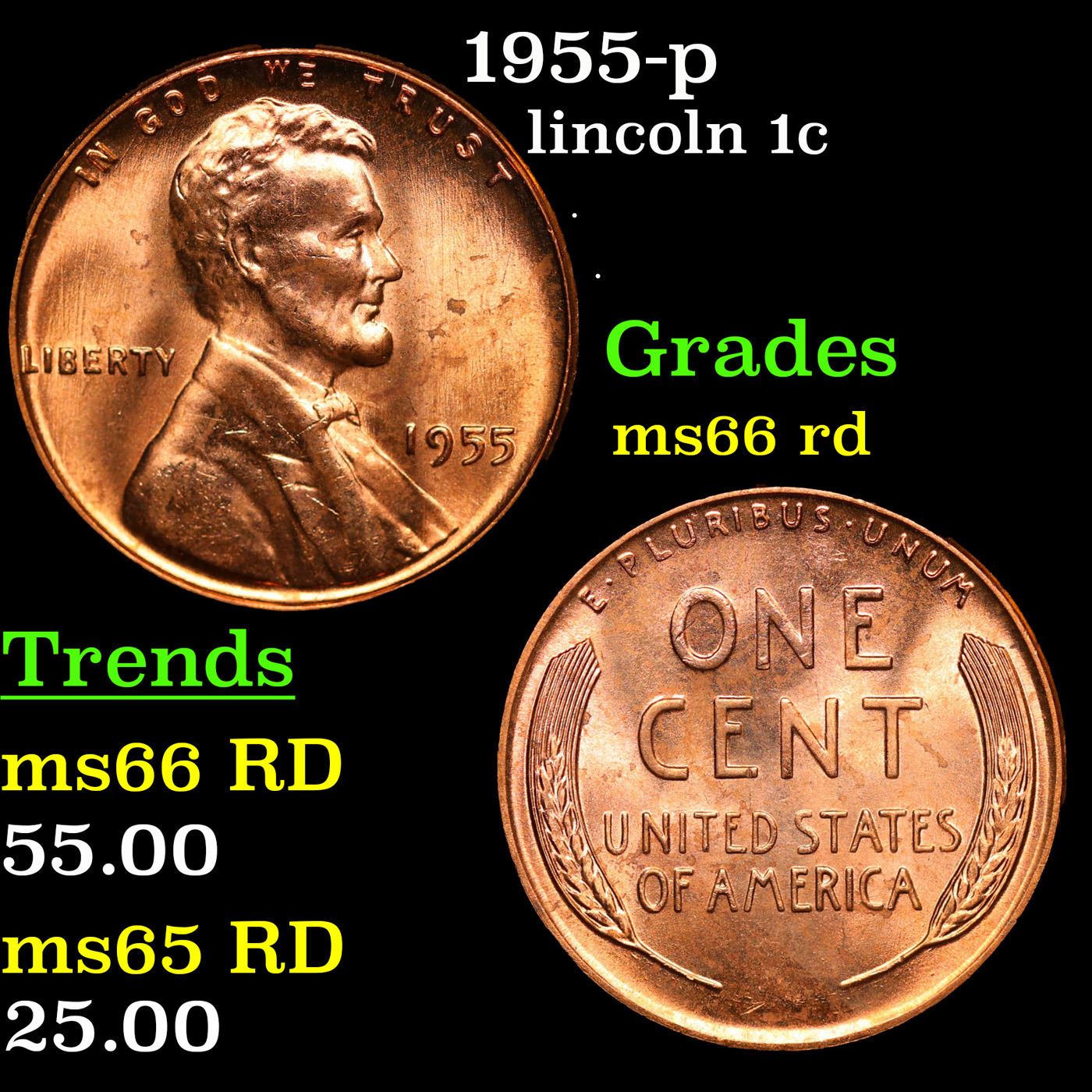 1955-p Lincoln Cent 1c Grades GEM+ Unc RD.