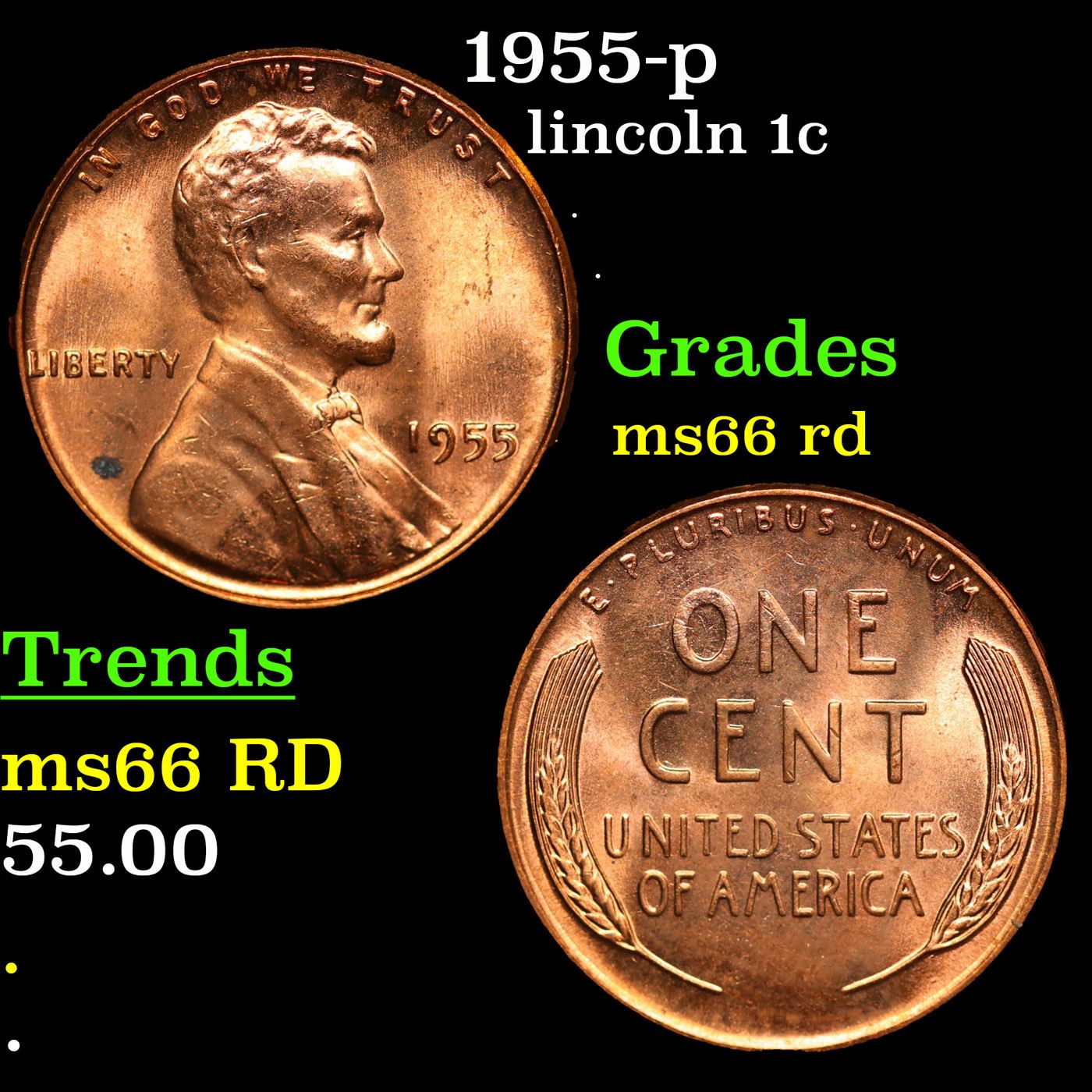 1955-p Lincoln Cent 1c Grades GEM+ Unc RD.