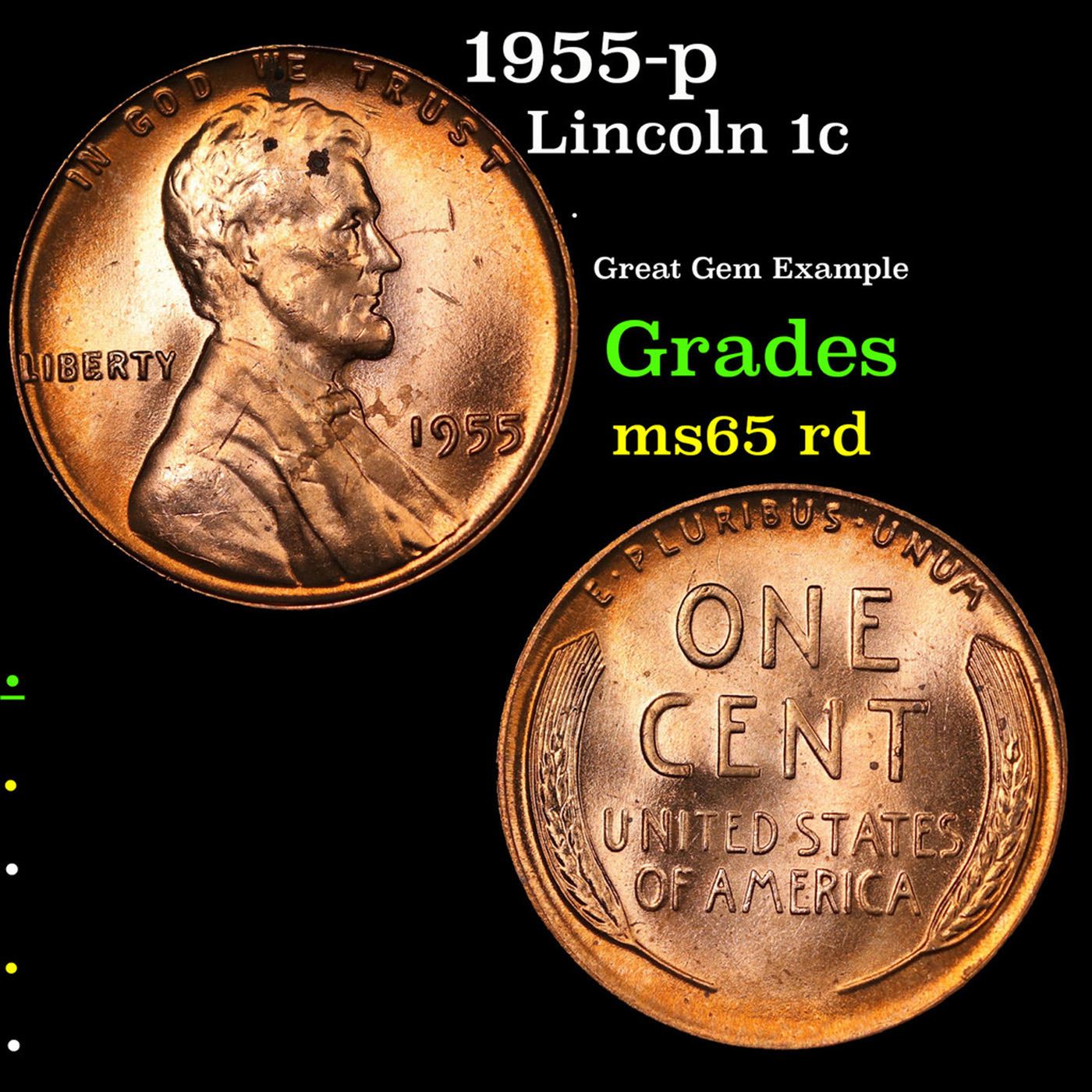 1955-p Lincoln Cent 1c Grades GEM Unc RD.