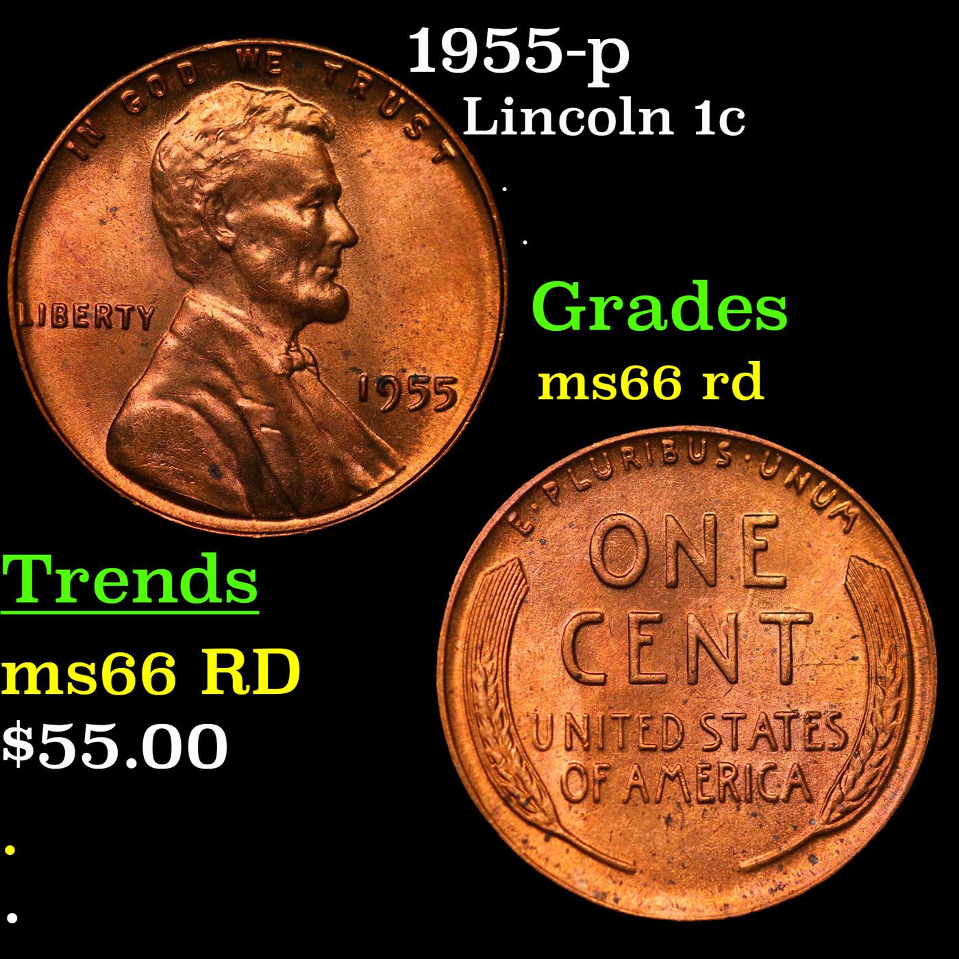 1955-p Lincoln Cent 1c Grades GEM+ Unc RD.