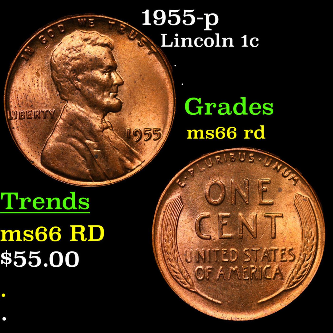 1955-p Lincoln Cent 1c Grades GEM+ Unc RD.
