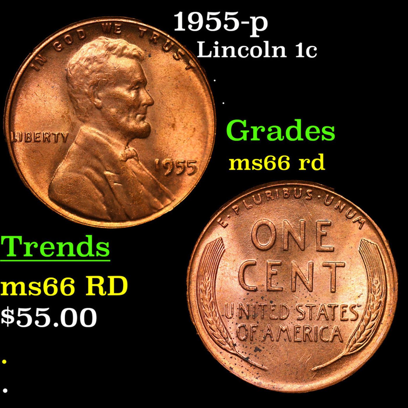 1955-p Lincoln Cent 1c Grades GEM+ Unc RD.