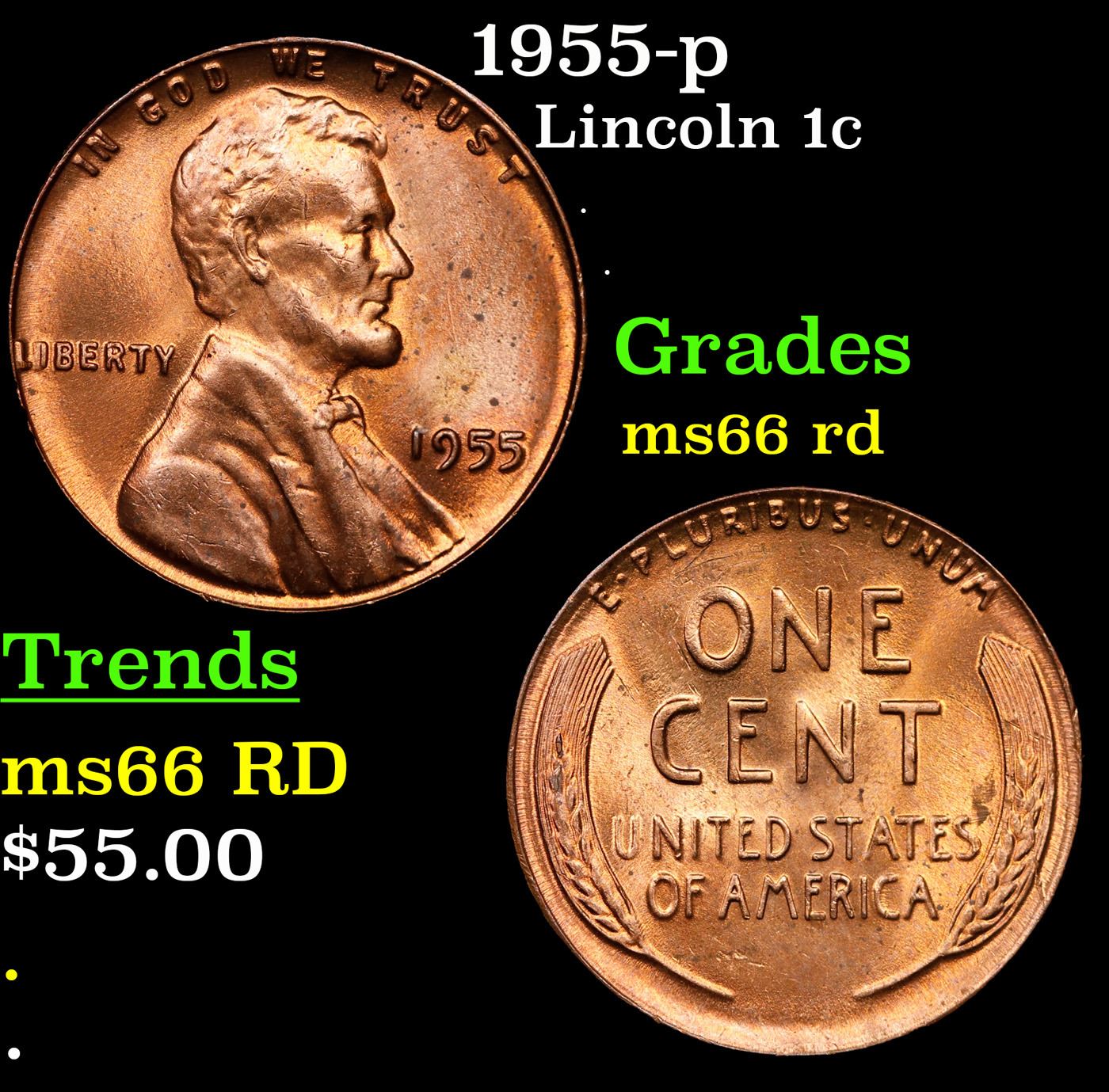 1955-p Lincoln Cent 1c Grades GEM+ Unc RD.