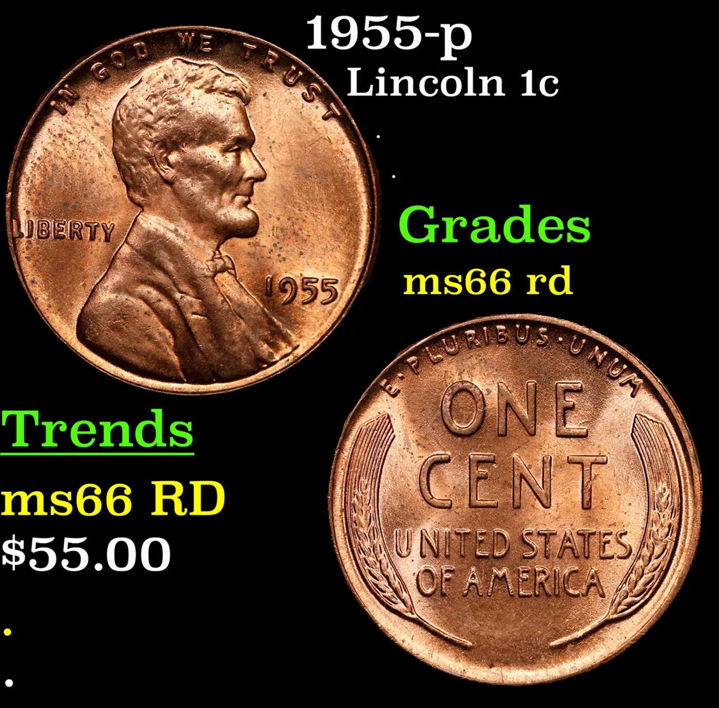 1955-p Lincoln Cent 1c Grades GEM+ Unc RD.
