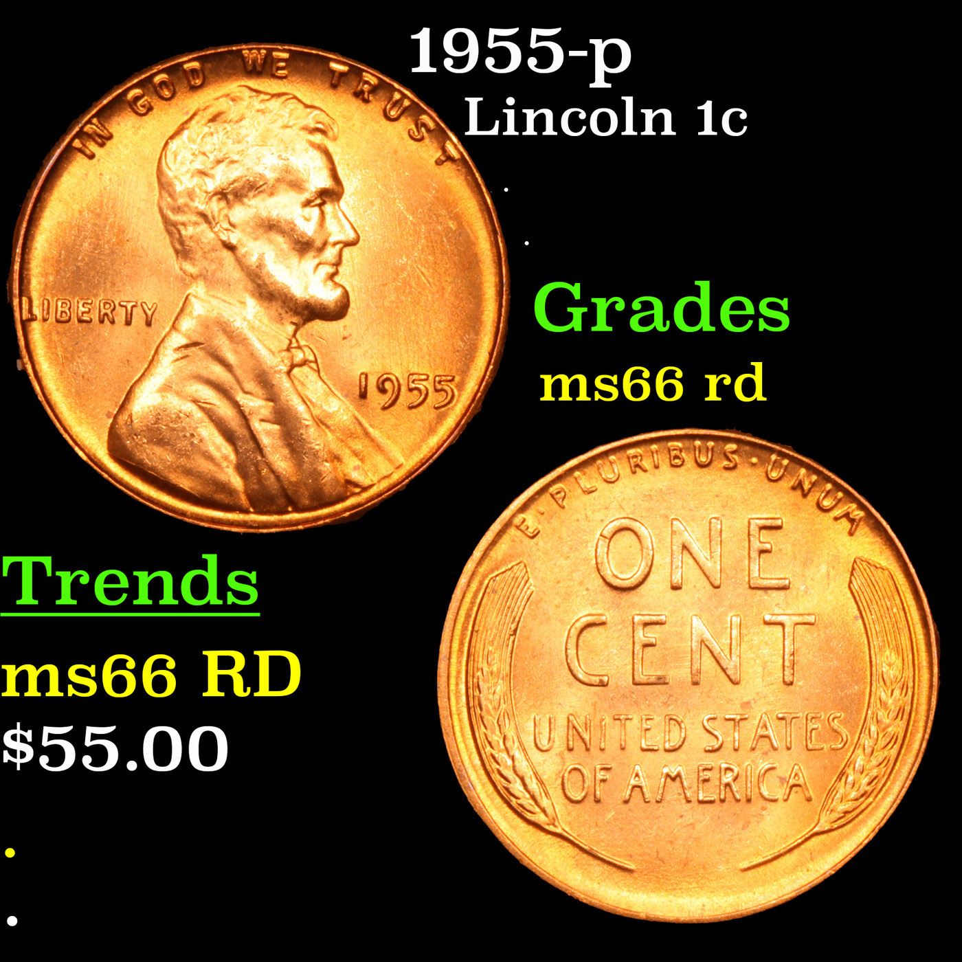 1955-p Lincoln Cent 1c Grades GEM+ Unc RD.