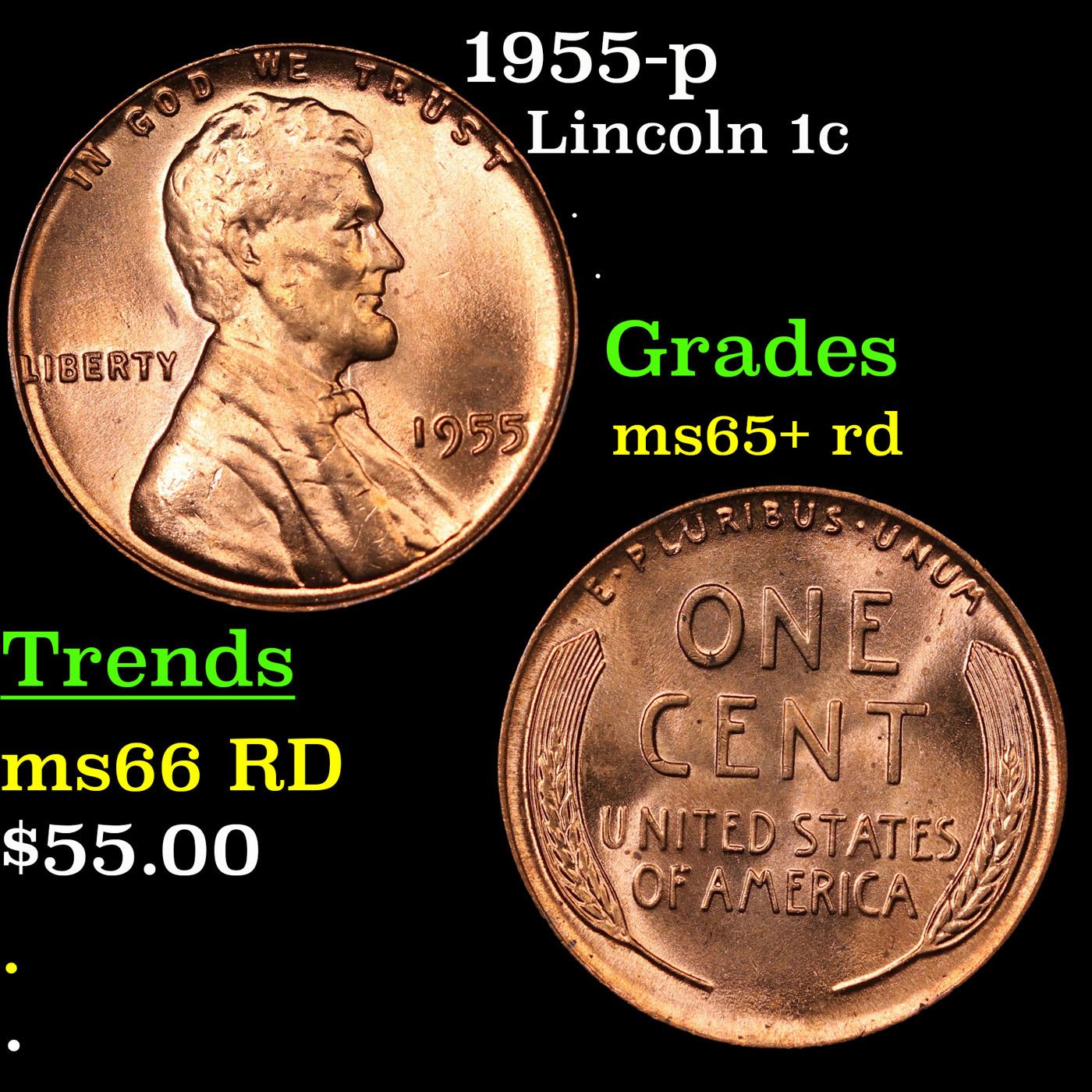 1955-p Lincoln Cent 1c Grades Gem+ Unc RD.