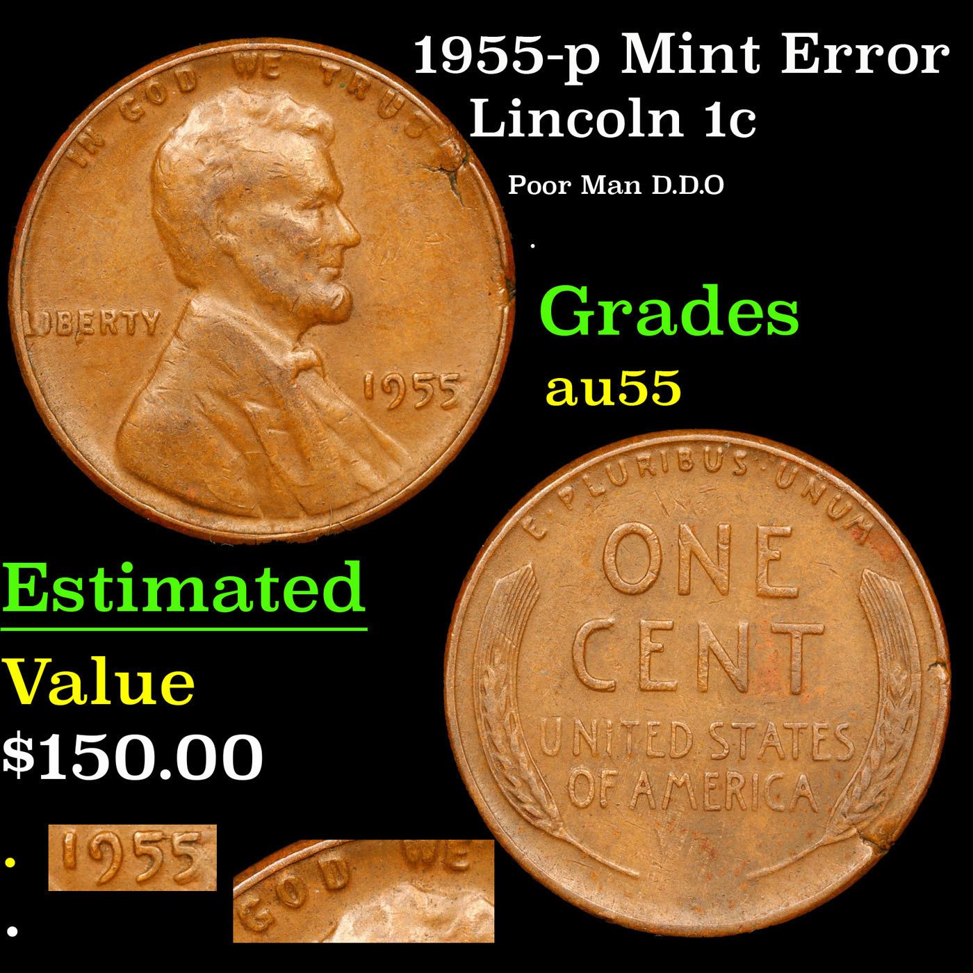 1955-p Mint Error Lincoln Cent 1c Grades Choice AU. A Corey's Pick