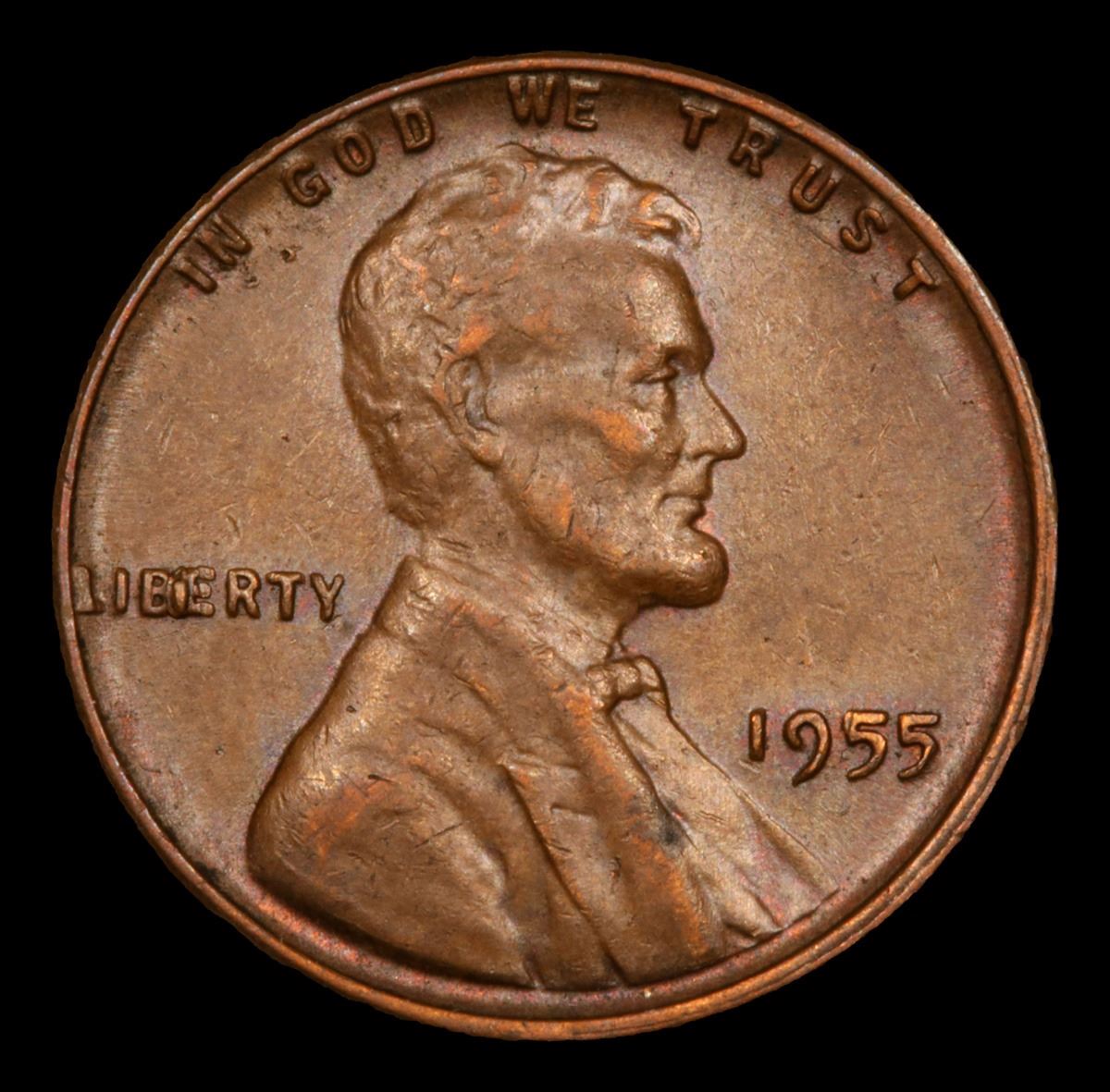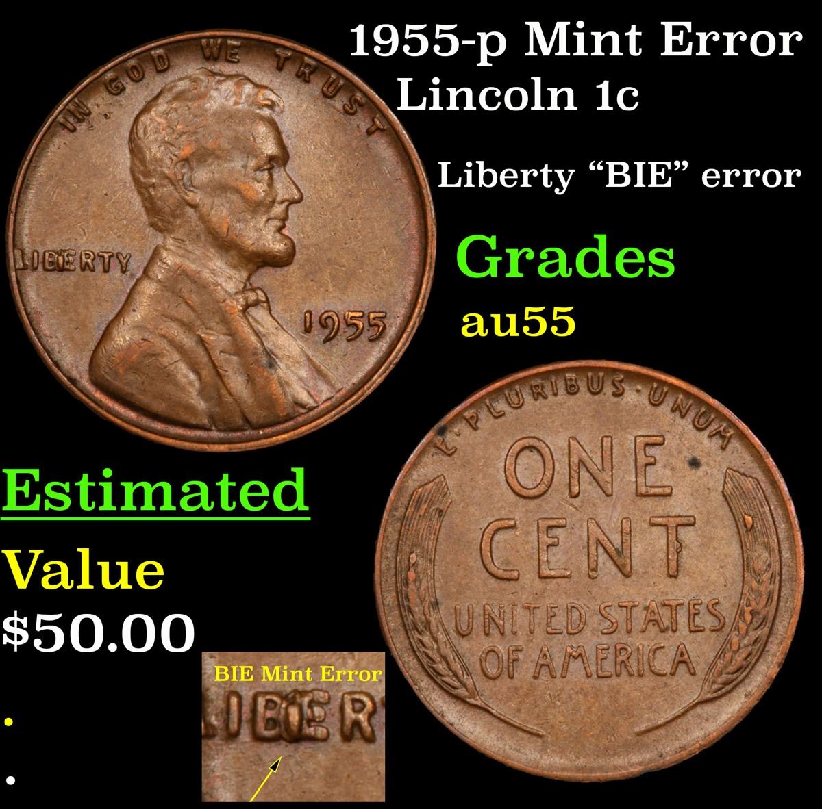 1955-p Mint Error Lincoln Cent 1c Grades Choice AU.
