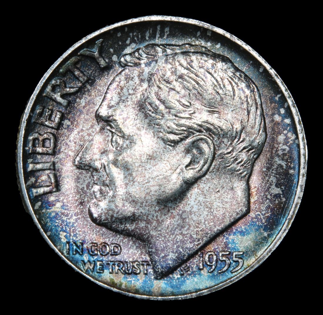 1955-p Rainbow Toned . Roosevelt Dime 10c Grades GEM++ Unc.
