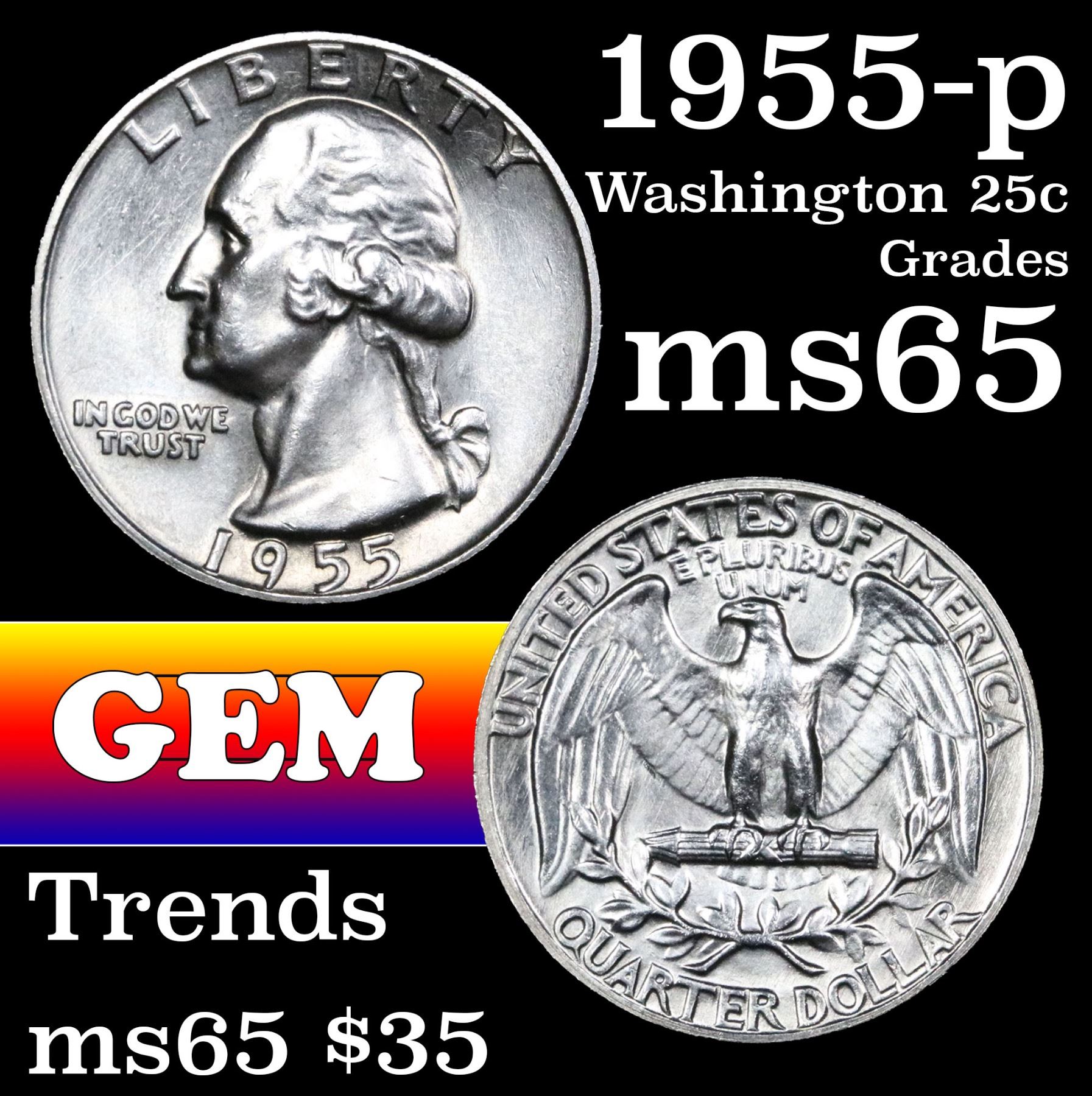 1955-p Washington Quarter 25c Grades GEM Unc.