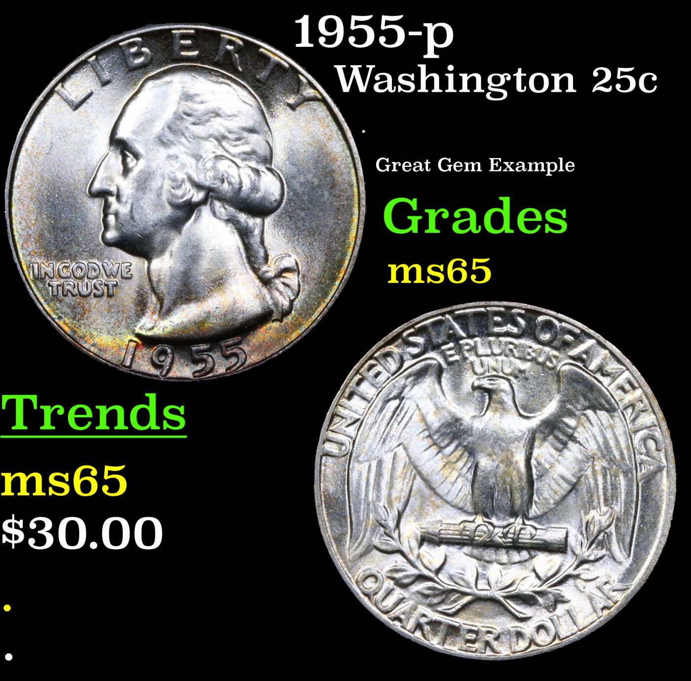 1955-p Washington Quarter 25c Grades GEM Unc.