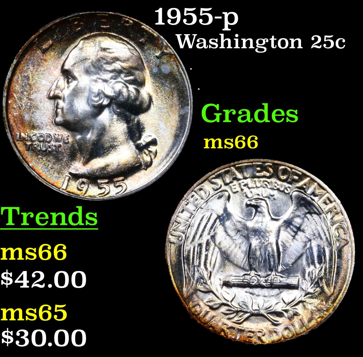 1955-p Washington Quarter 25c Grades GEM+ Unc.