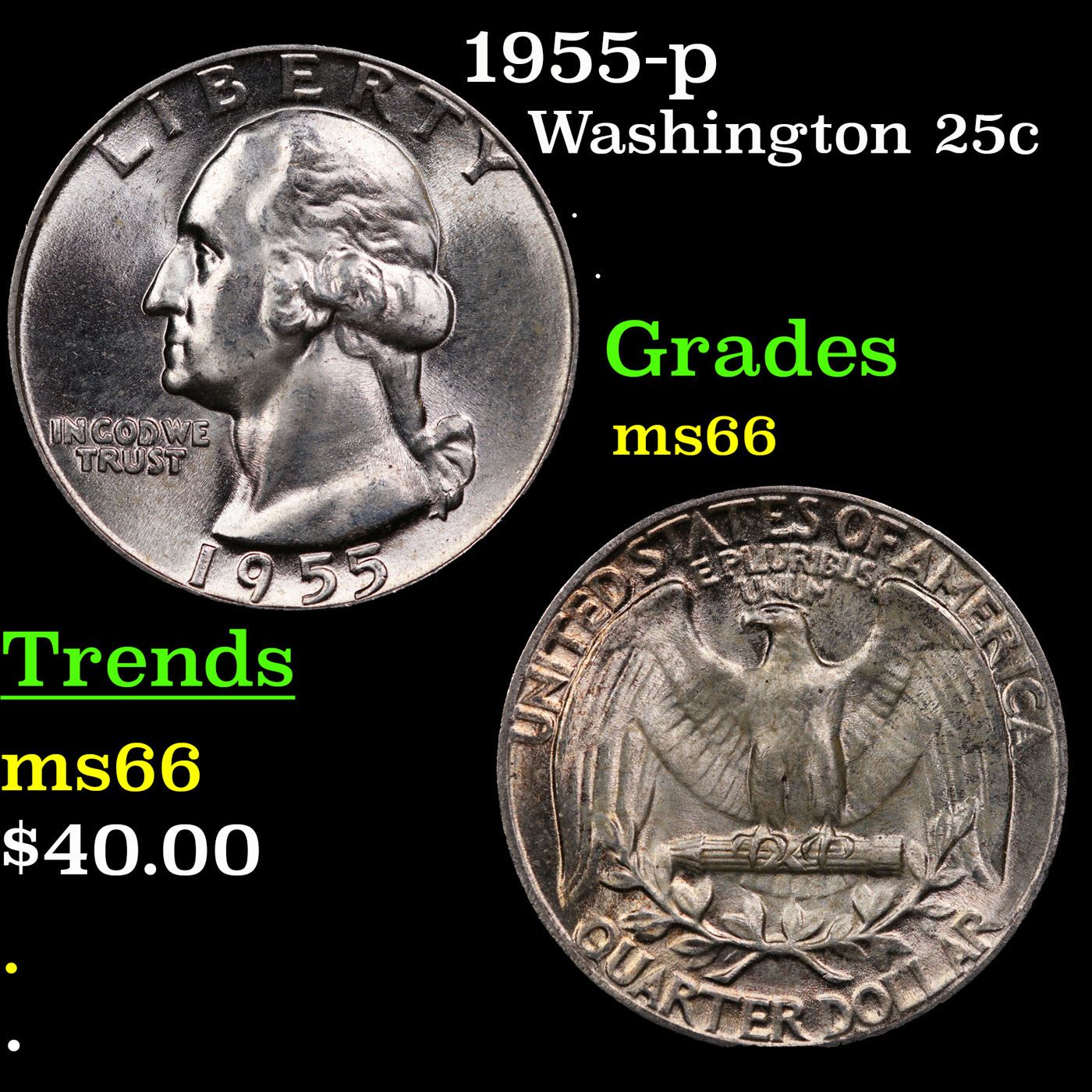 1955-p Washington Quarter 25c Grades GEM+ Unc.