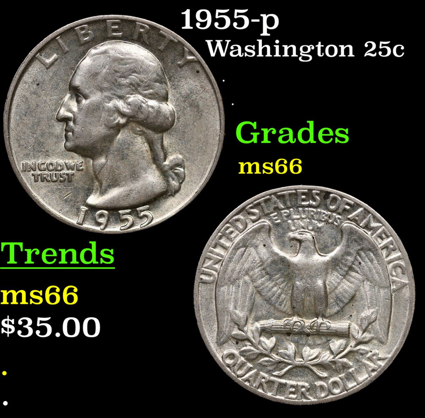 1955-p Washington Quarter 25c Grades GEM+ Unc