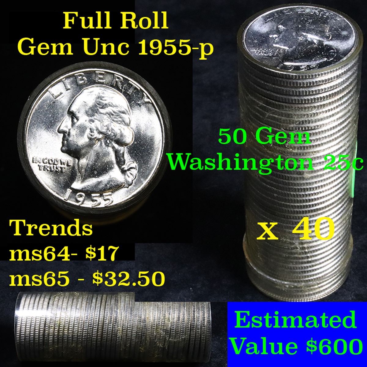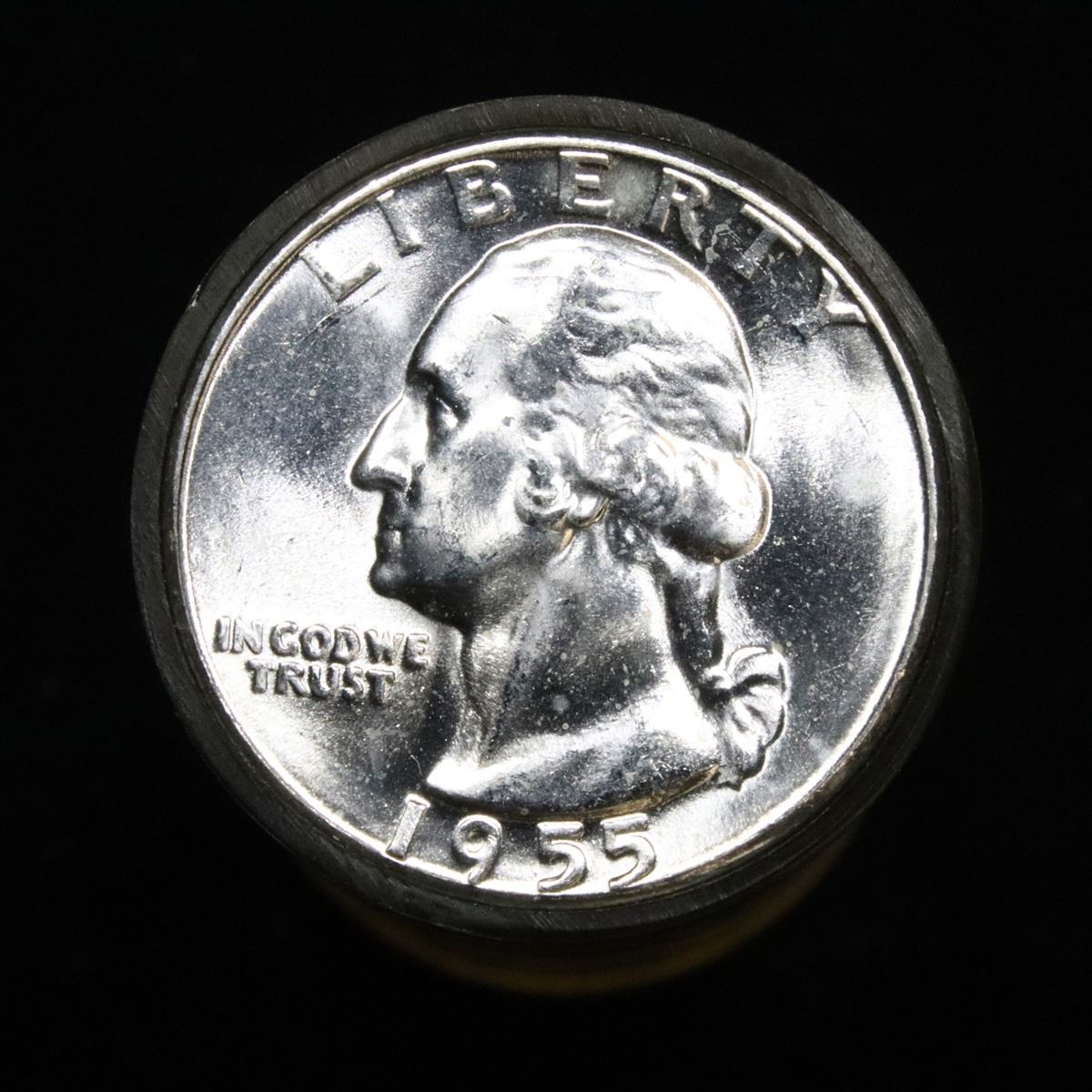 1955-p Washington Quarter 25c roll, 40 pieces. A real find. A great roll of brilliant uncirculated Washington Quarters. All 1955-p Trends lists ms64 at $15/each, $600