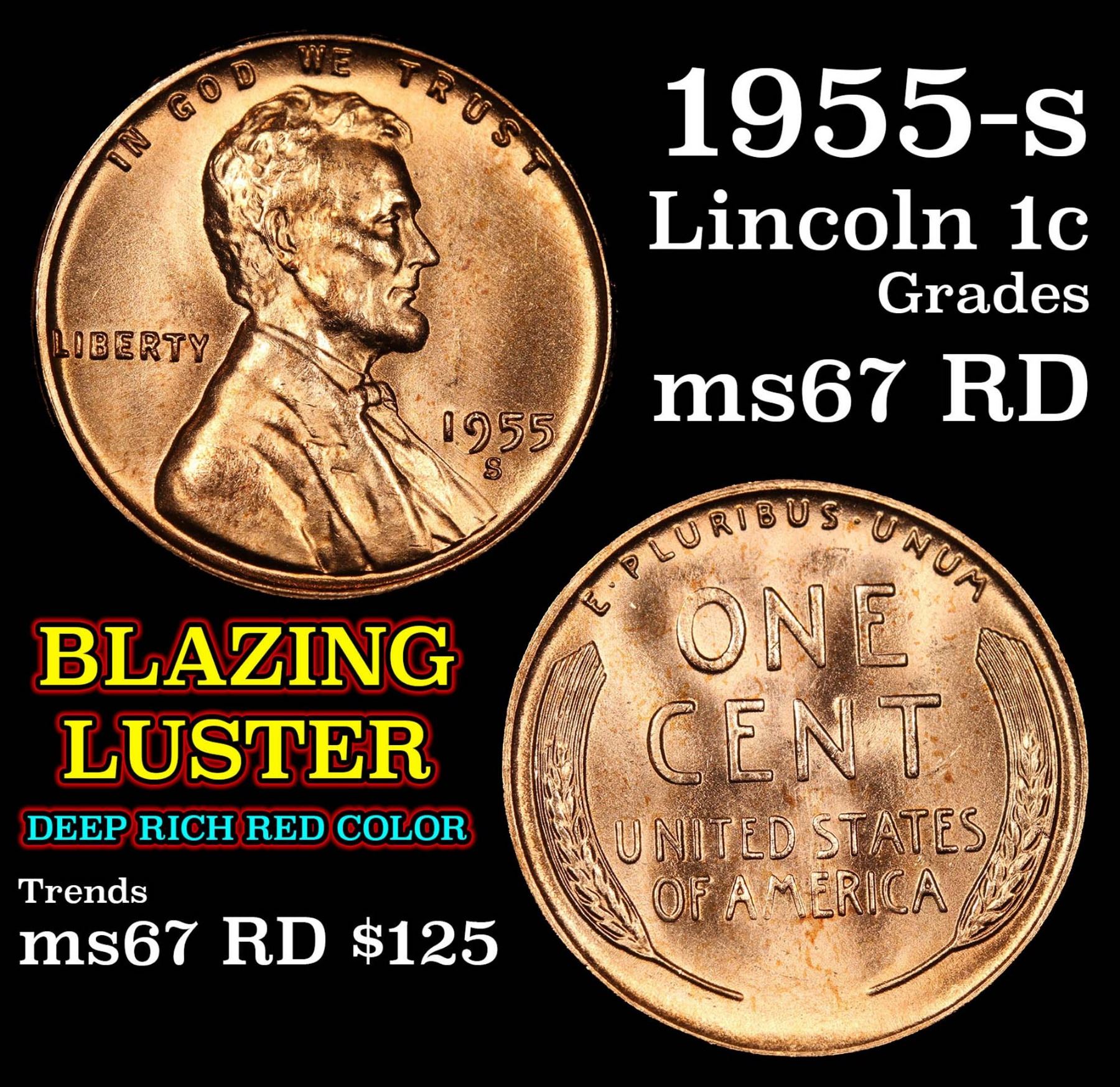 1955-s Lincoln Cent 1c Grades GEM++ Unc RD.