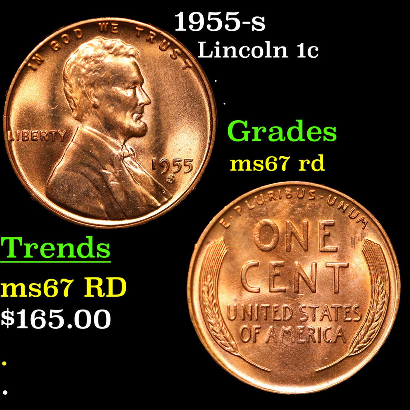 1955-s Lincoln Cent 1c Grades GEM++ Unc RD.