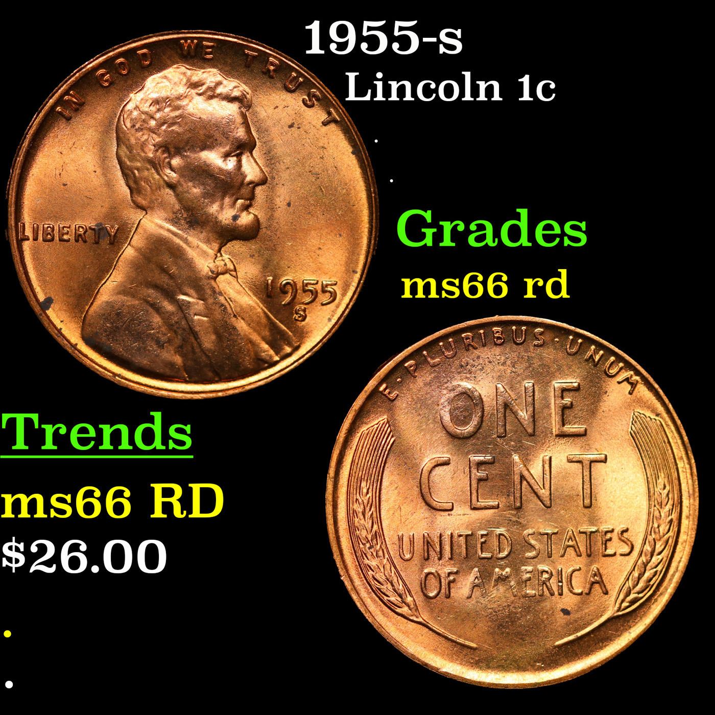 1955-s Lincoln Cent 1c Grades GEM+ Unc RD.