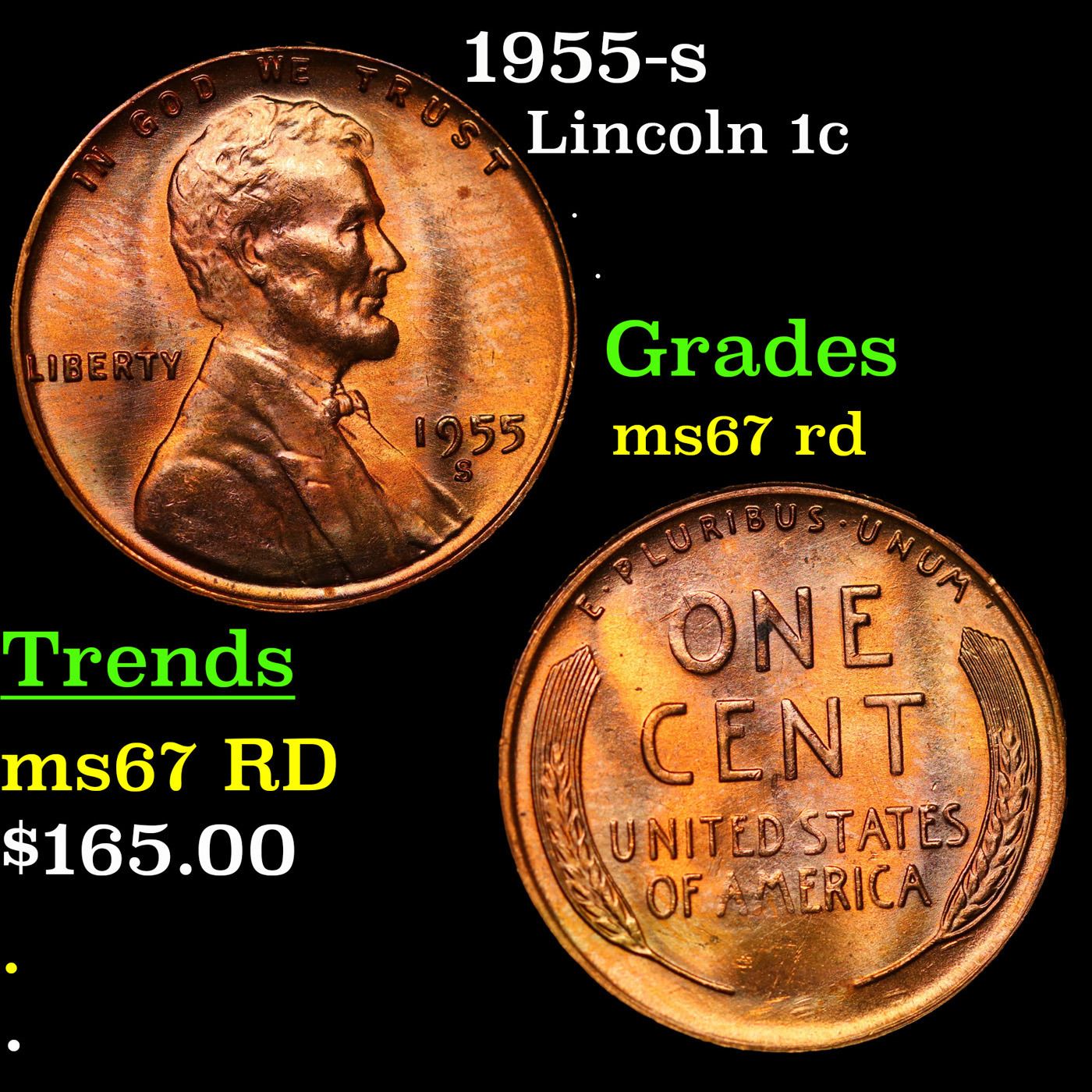 1955-s Lincoln Cent 1c Grades GEM++ Unc RD.