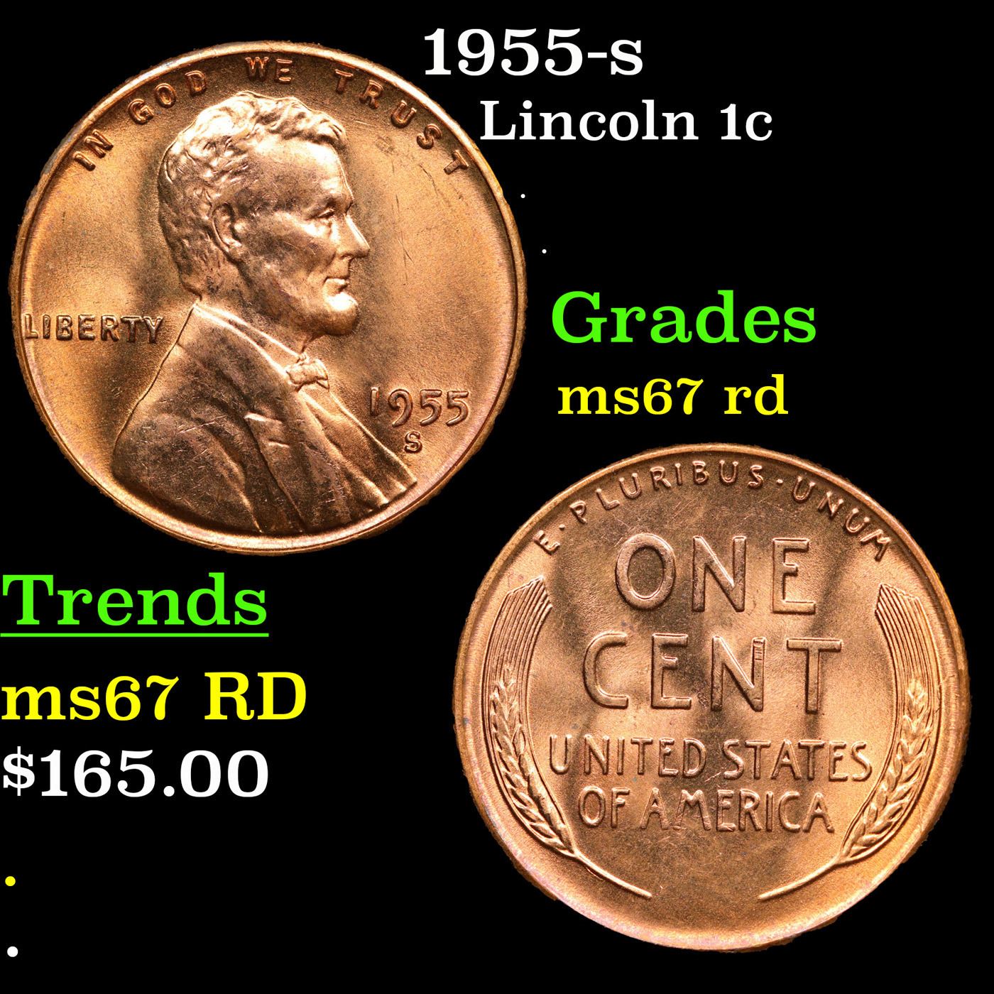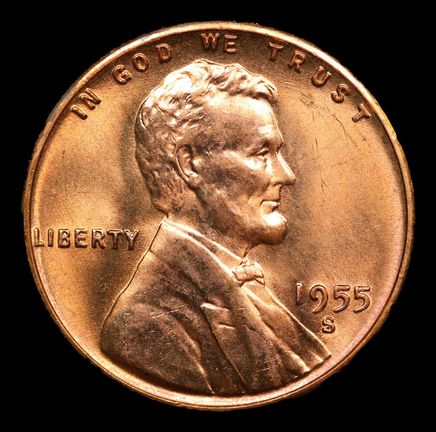 1955-s Lincoln Cent 1c Grades GEM++ Unc RD.
