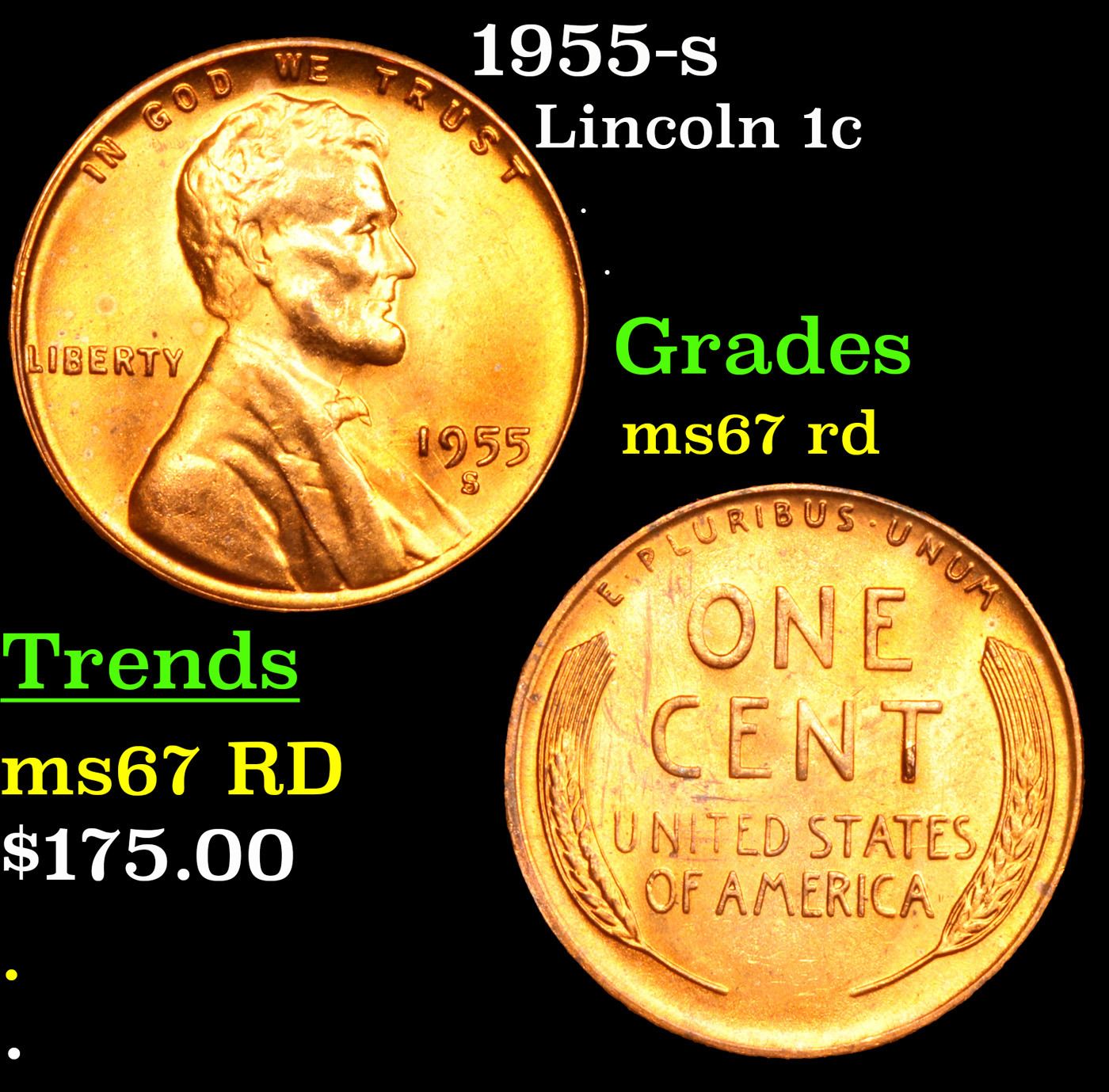 1955-s Lincoln Cent 1c Grades GEM++ Unc RD.