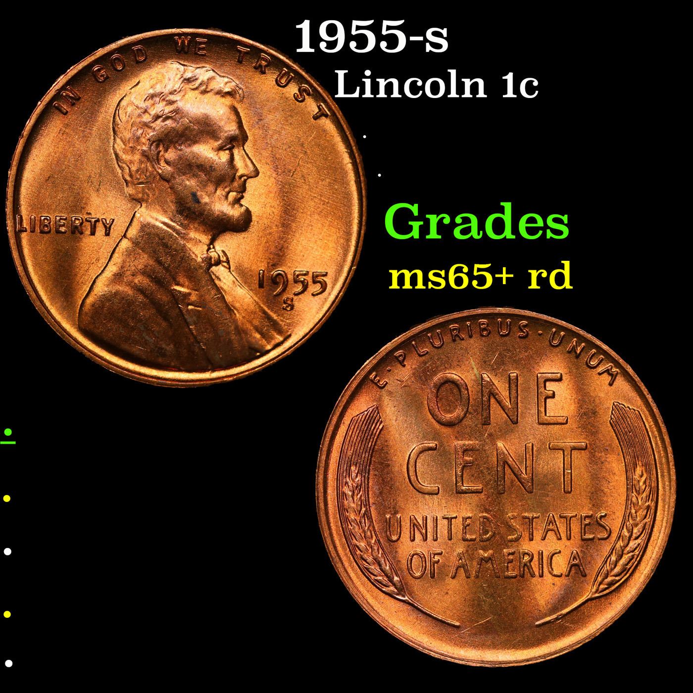 1955-s Lincoln Cent 1c Grades Gem+ Unc RD.