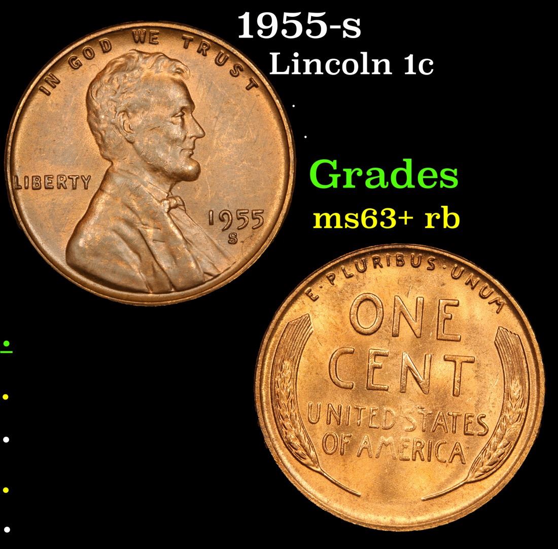 1955-s . . Lincoln Cent 1c Grades Select+ Unc RB.