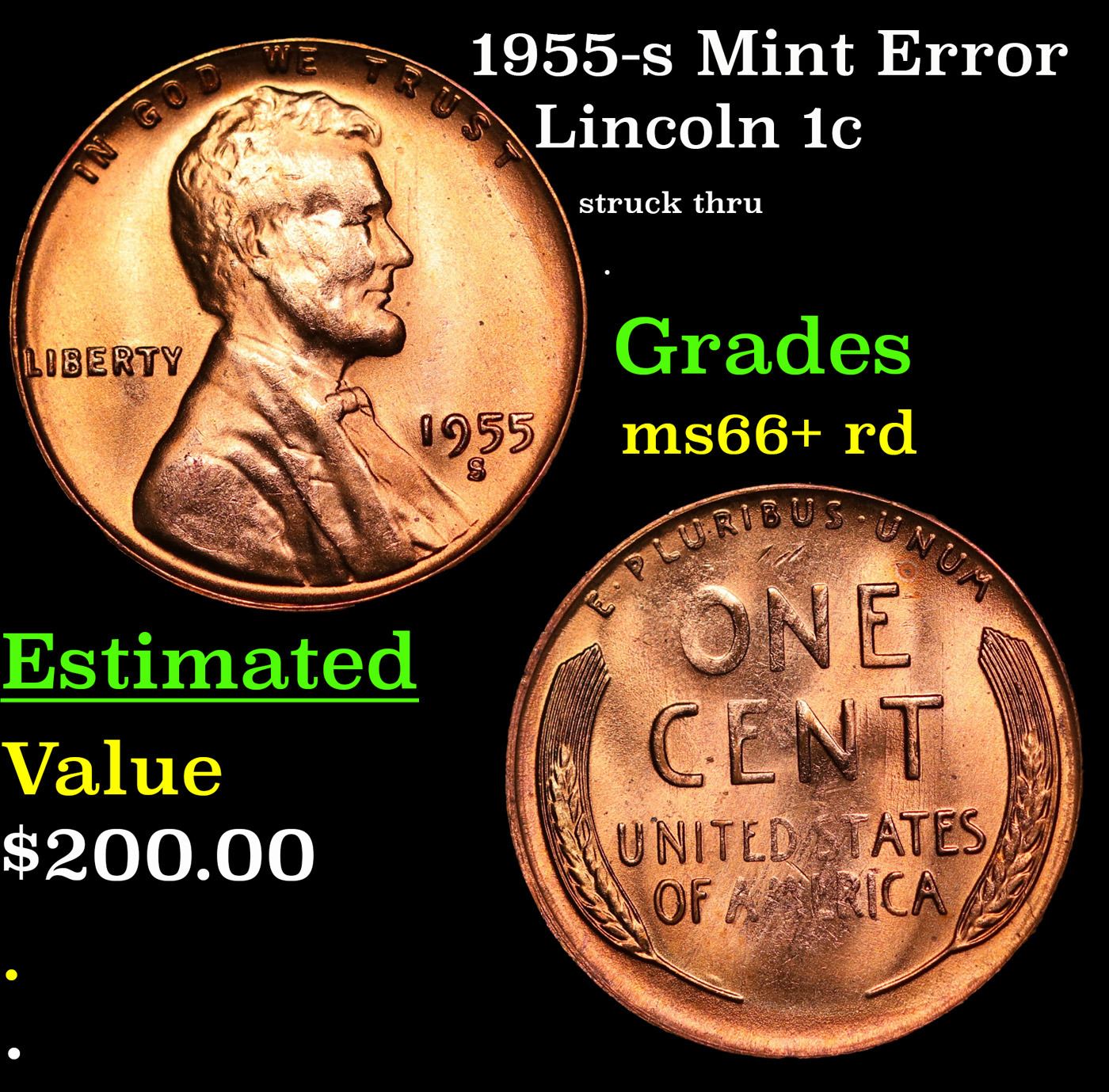 1955-s Mint Error Lincoln Cent 1c Grades GEM++ RD.