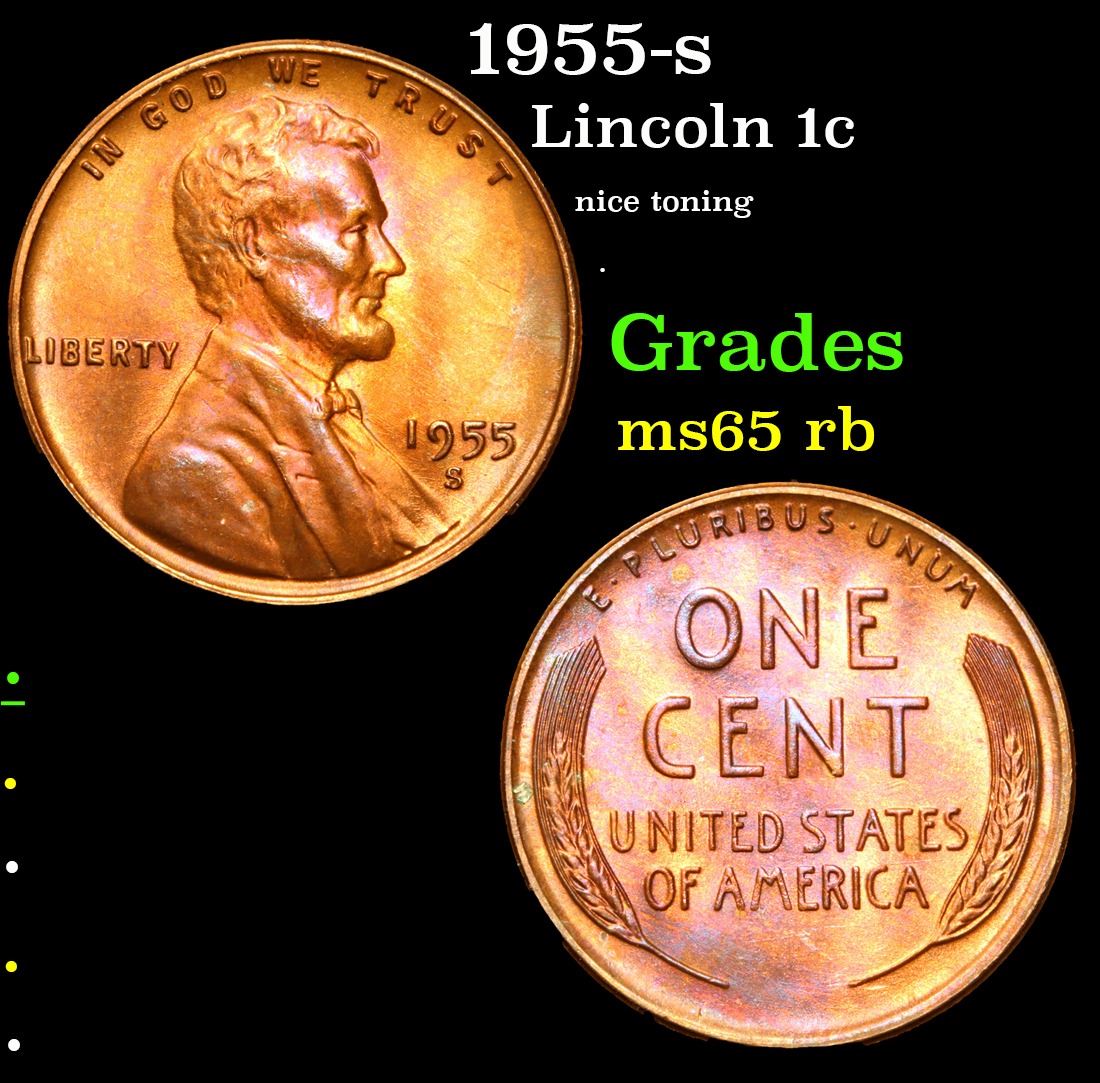 1955-s nice toning . Lincoln Cent 1c Grades GEM Unc RB.