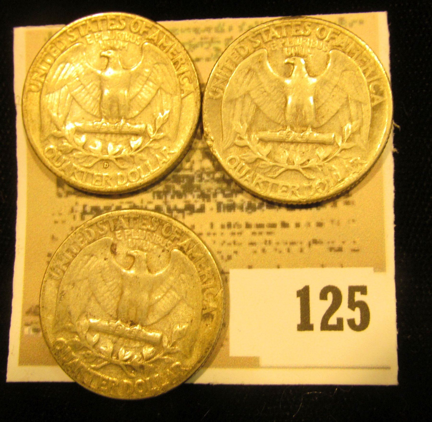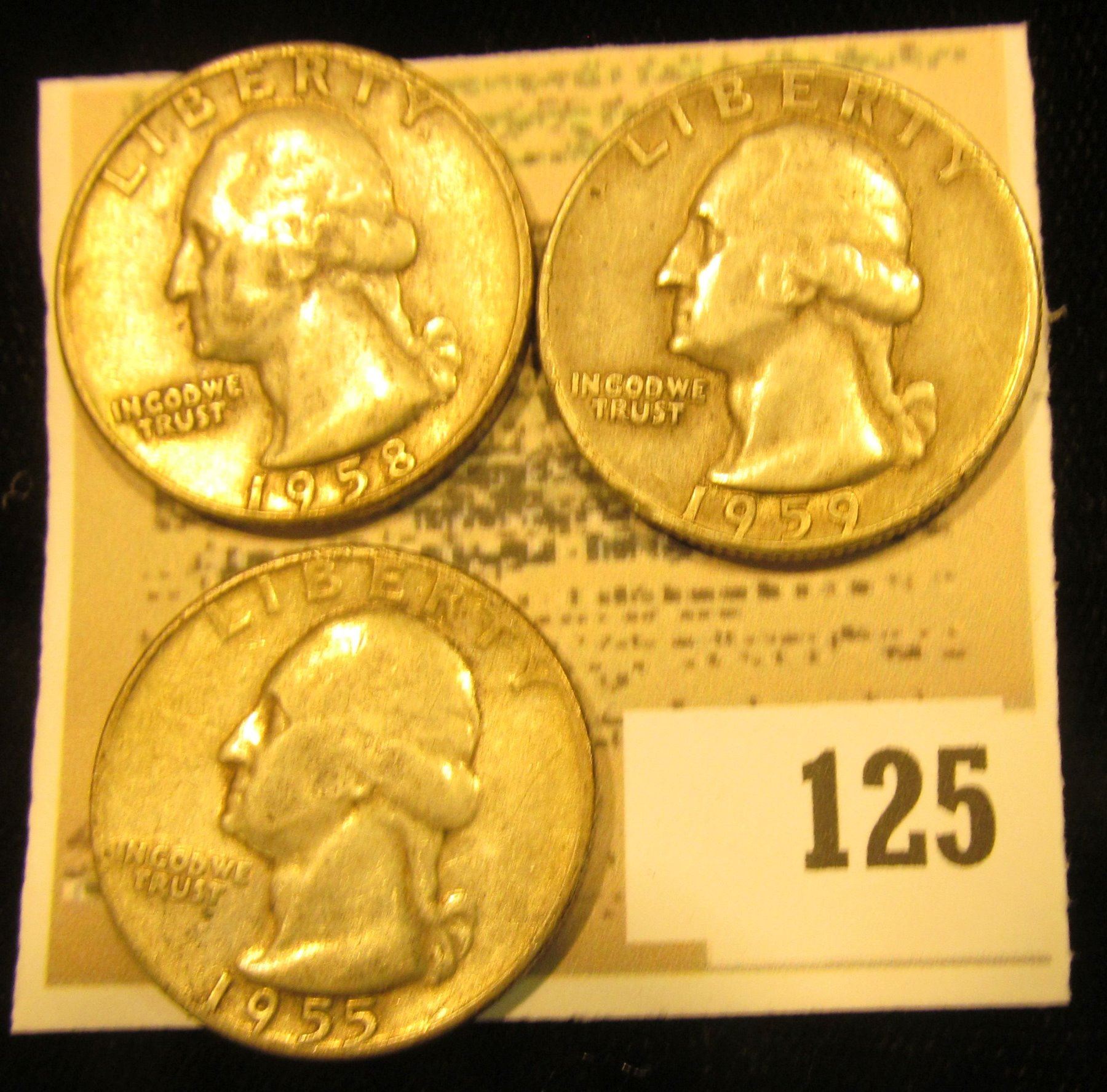 1955P, 58D, & 59P U.S. Silver Washington Quarters.