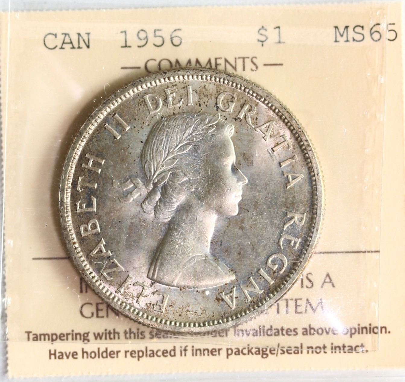 1956 $1 ICCS Graded Gem Mint State-65. Rare in this Grade. A similar example brought in $4481 at the 2025 New Year's sale.