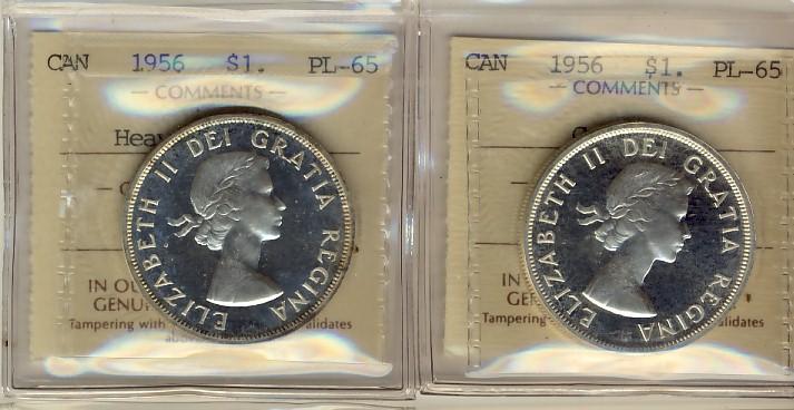 1956 $1 ICCS PL65 Cameo and Heavy Cameo. Lot of 2 coins.