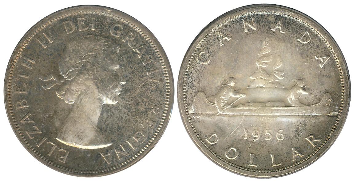 1956 $1 PCGS MS65. Another nice example with lovely pink and green shades over full underlying luster.