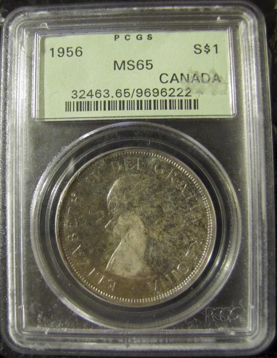 1956 $1 PCGS MS65. Another nice example with lovely pink and green shades over full underlying luster.