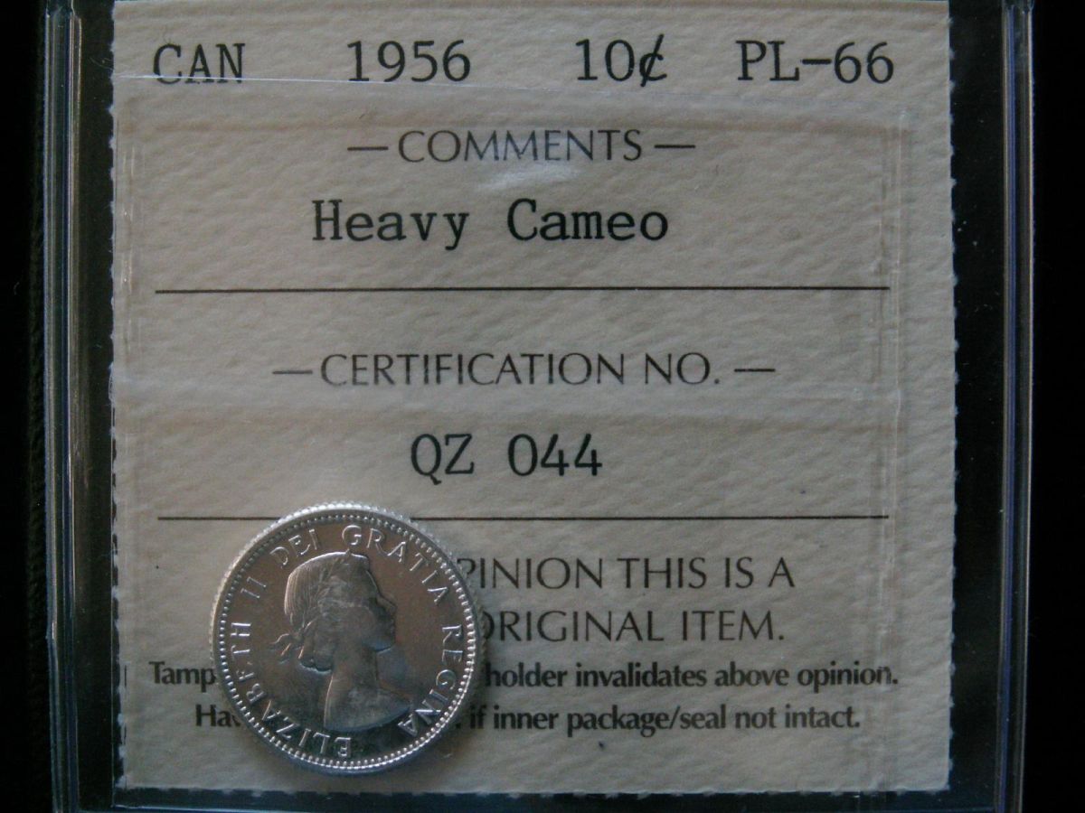 1956 10¢ ICCS PL66 Heavy Cameo.