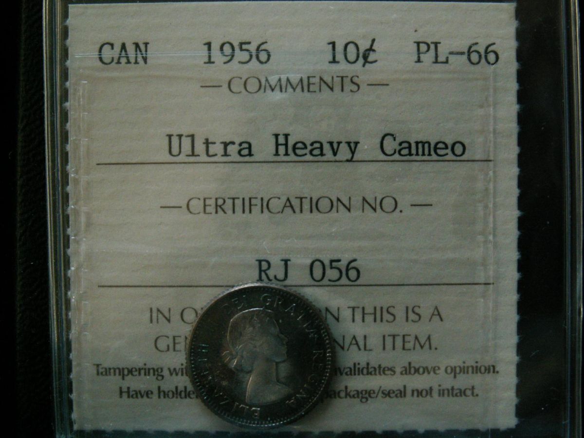 1956 10¢ ICCS PL66 ULTRA HEAVY CAMEO. Scarce.