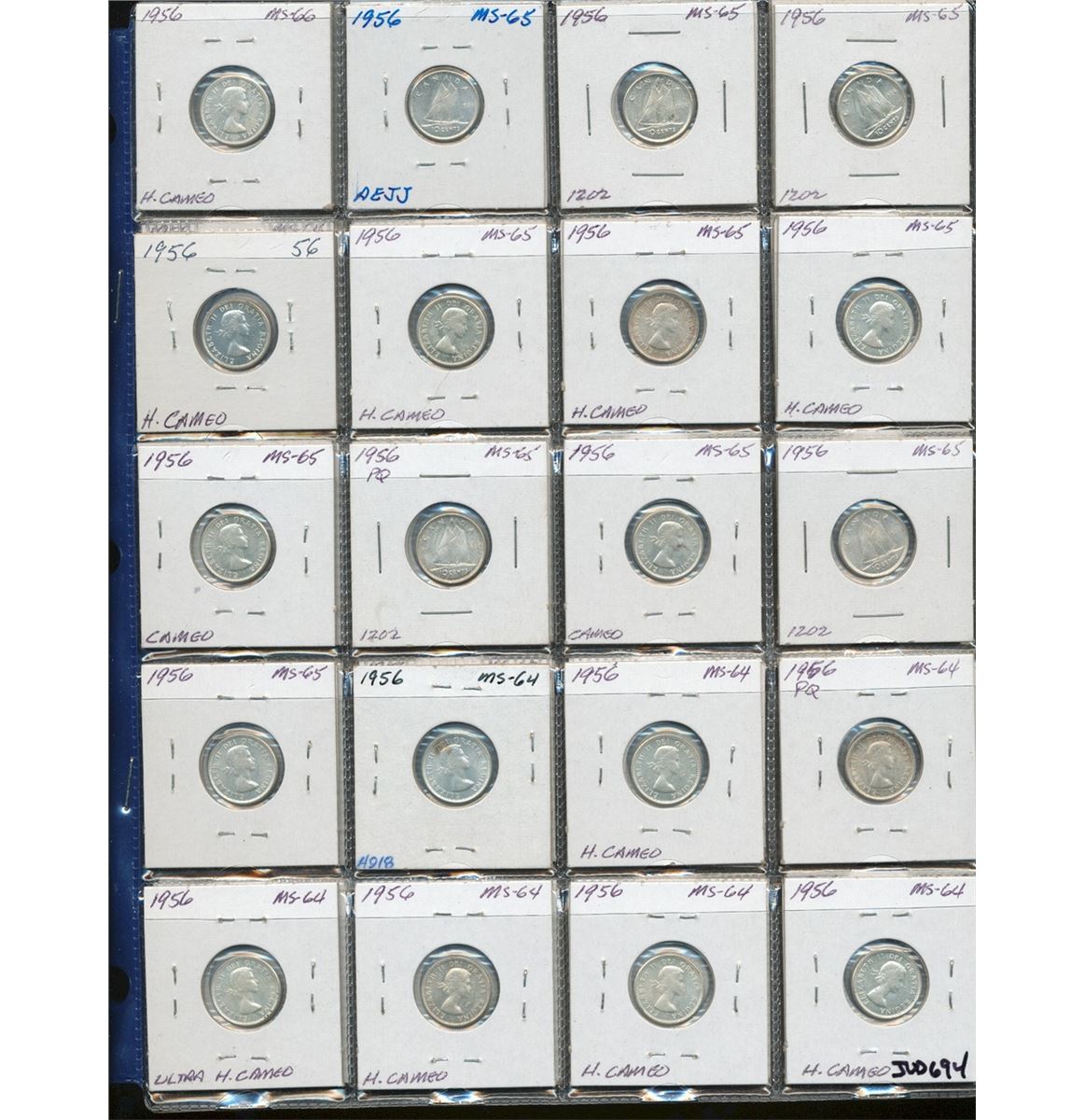 1956 10¢ Roll; includes 50 pieces all in 2x2's. MS63 to MS65 for grades. Lot also includes 5 1956 Dot 10¢ MS(4) Circ(2). A nice lot that should be inspected.